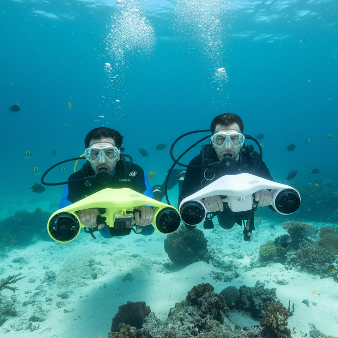 The Asiwo Manta underwater scooter offers ultra-light design, one-hand operation, integrated camera mount, and versatile 3 speed modes for effortless underwater exploration.