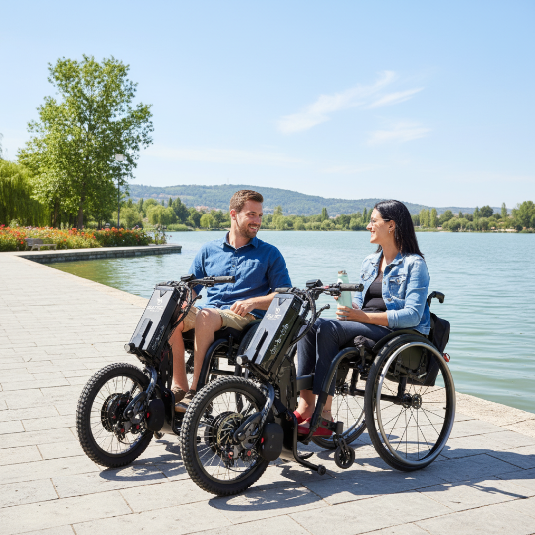 Spremenite svoj ročni invalidski voziček v električnega – z enim klikom do več svobode in enostavnosti pri prevozu.