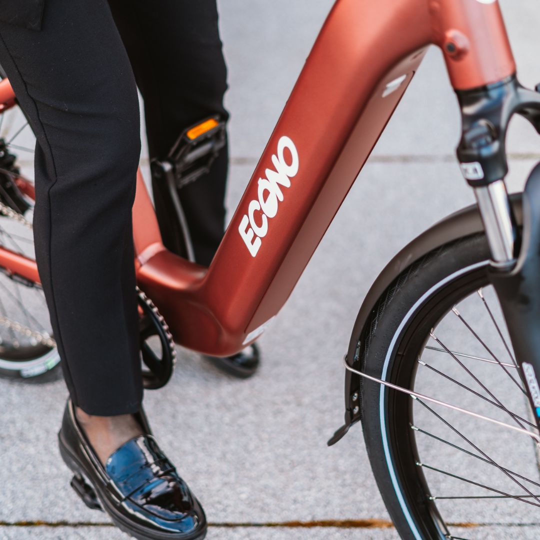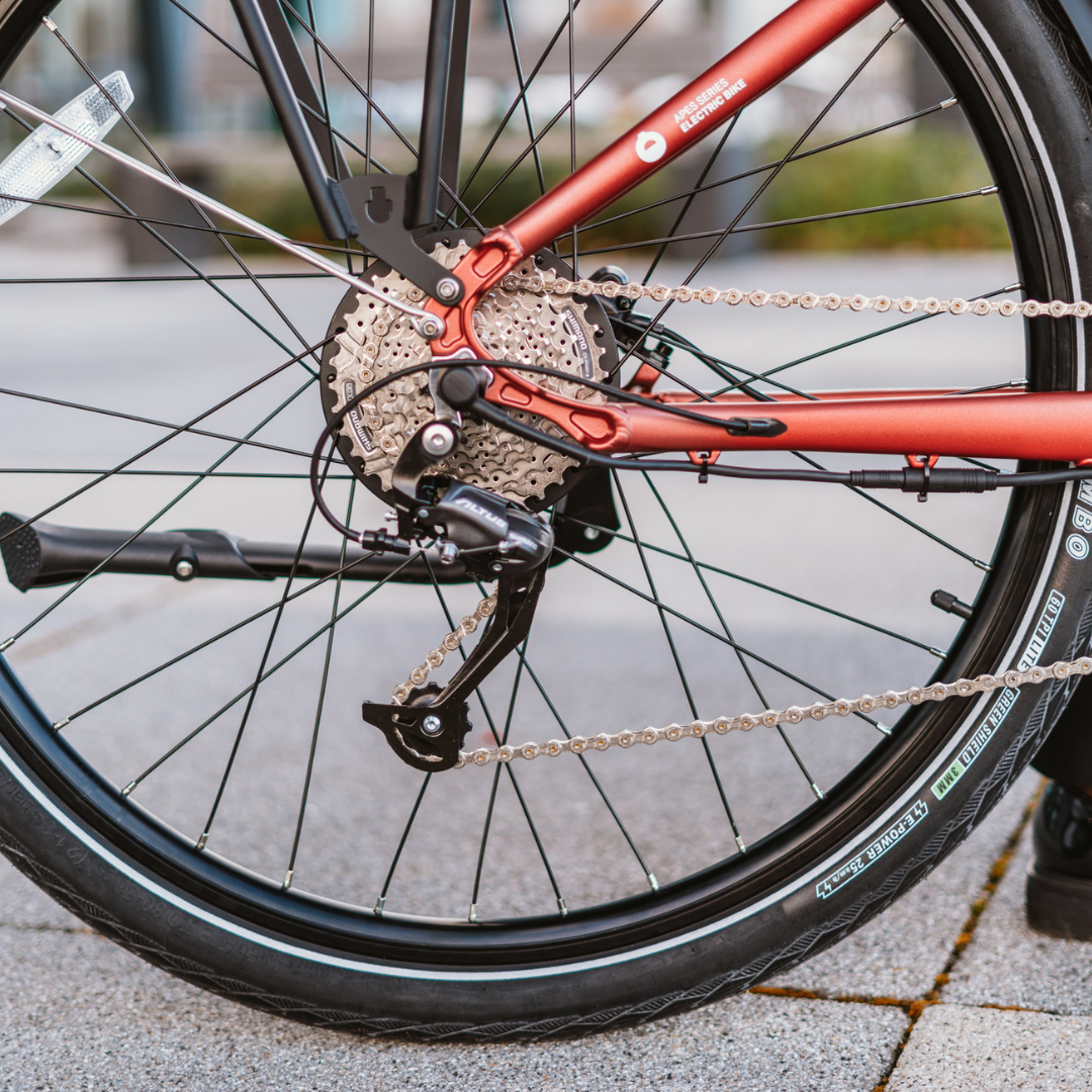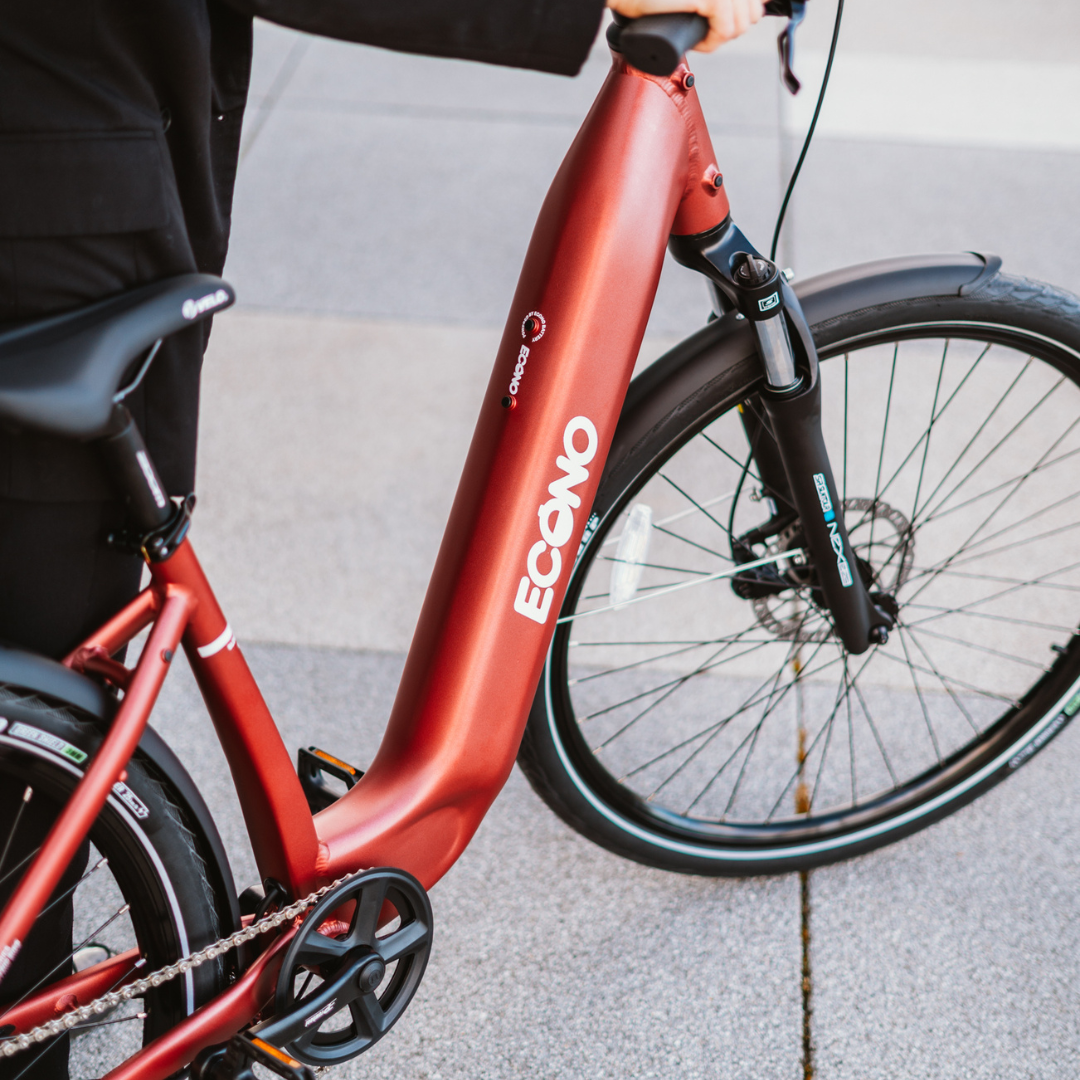 Routine maintenance of the ECONO Apes EER4 ensures reliable long-term operation. Tires should be checked regularly for pressure and tread wear, with replacement intervals guided by mileage. The hydraulic braking system requires inspection of pads, rotors, and fluid levels to maintain stopping performance. The Suntour suspension fork should be cleaned after dusty or wet conditions, with seals inspected for leaks. The Shimano Altus 9-speed drivetrain requires regular cleaning, lubrication, and indexing checks to ensure smooth shifting. Electrical connectors and the Bafang C080 display should be kept free of dirt and moisture. The removable ECONO ELK battery should be stored at 40–60% charge if unused for extended periods, in a cool and dry environment. Regular tightening of wheel axles, stem bolts, and rack fasteners maintains frame stability. With scheduled care, the EER4 remains efficient, comfortable, and durable for years of everyday cycling.