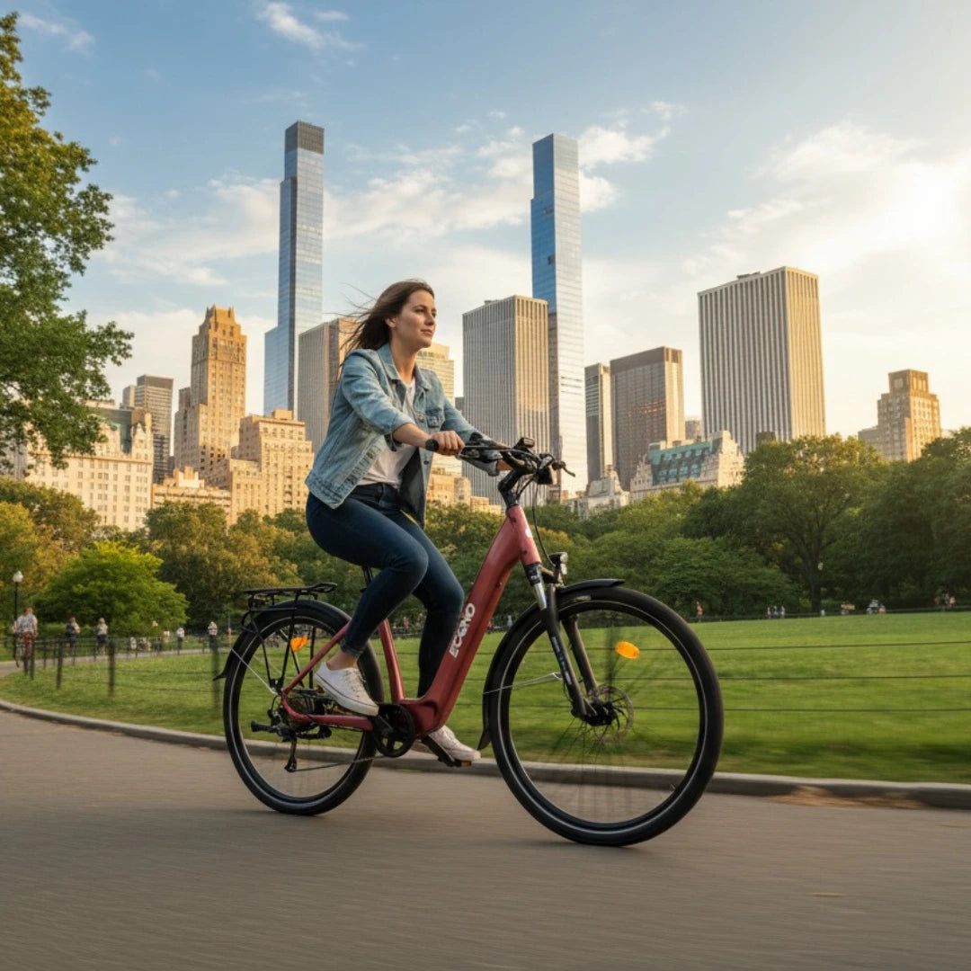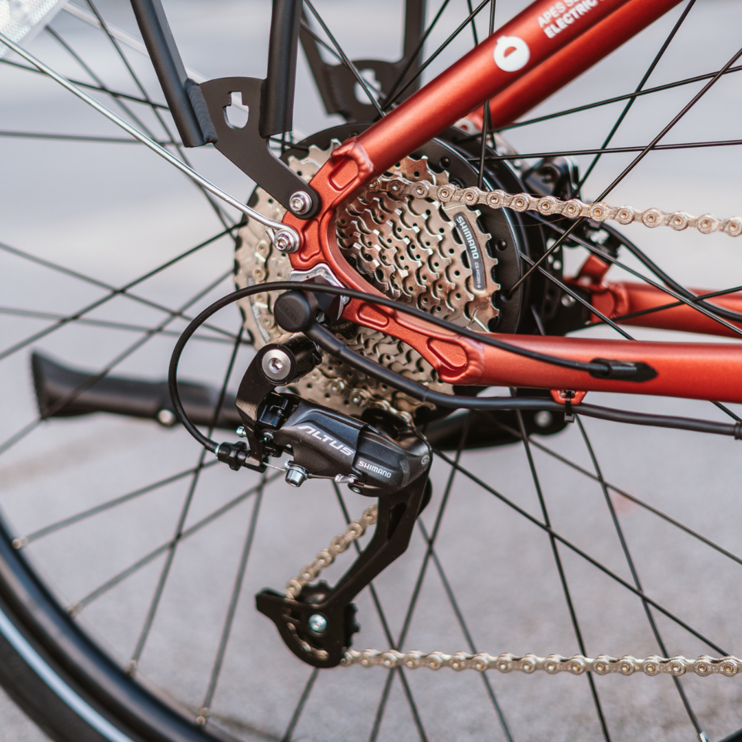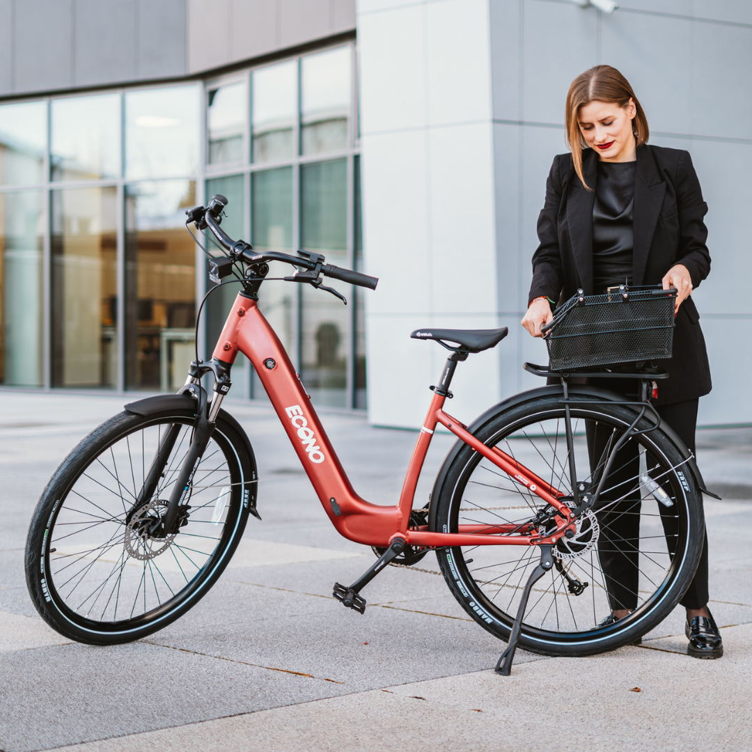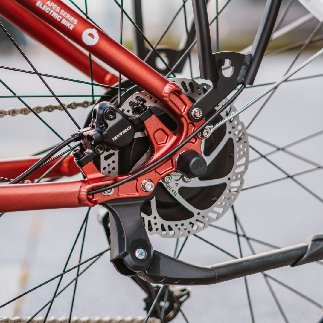 Routine maintenance of the ECONO Apes EER4 ensures reliable long-term operation. Tires should be checked regularly for pressure and tread wear, with replacement intervals guided by mileage. The hydraulic braking system requires inspection of pads, rotors, and fluid levels to maintain stopping performance. The Suntour suspension fork should be cleaned after dusty or wet conditions, with seals inspected for leaks. The Shimano Altus 9-speed drivetrain requires regular cleaning, lubrication, and indexing checks to ensure smooth shifting. Electrical connectors and the Bafang C080 display should be kept free of dirt and moisture. The removable ECONO ELK battery should be stored at 40–60% charge if unused for extended periods, in a cool and dry environment. Regular tightening of wheel axles, stem bolts, and rack fasteners maintains frame stability. With scheduled care, the EER4 remains efficient, comfortable, and durable for years of everyday cycling.
