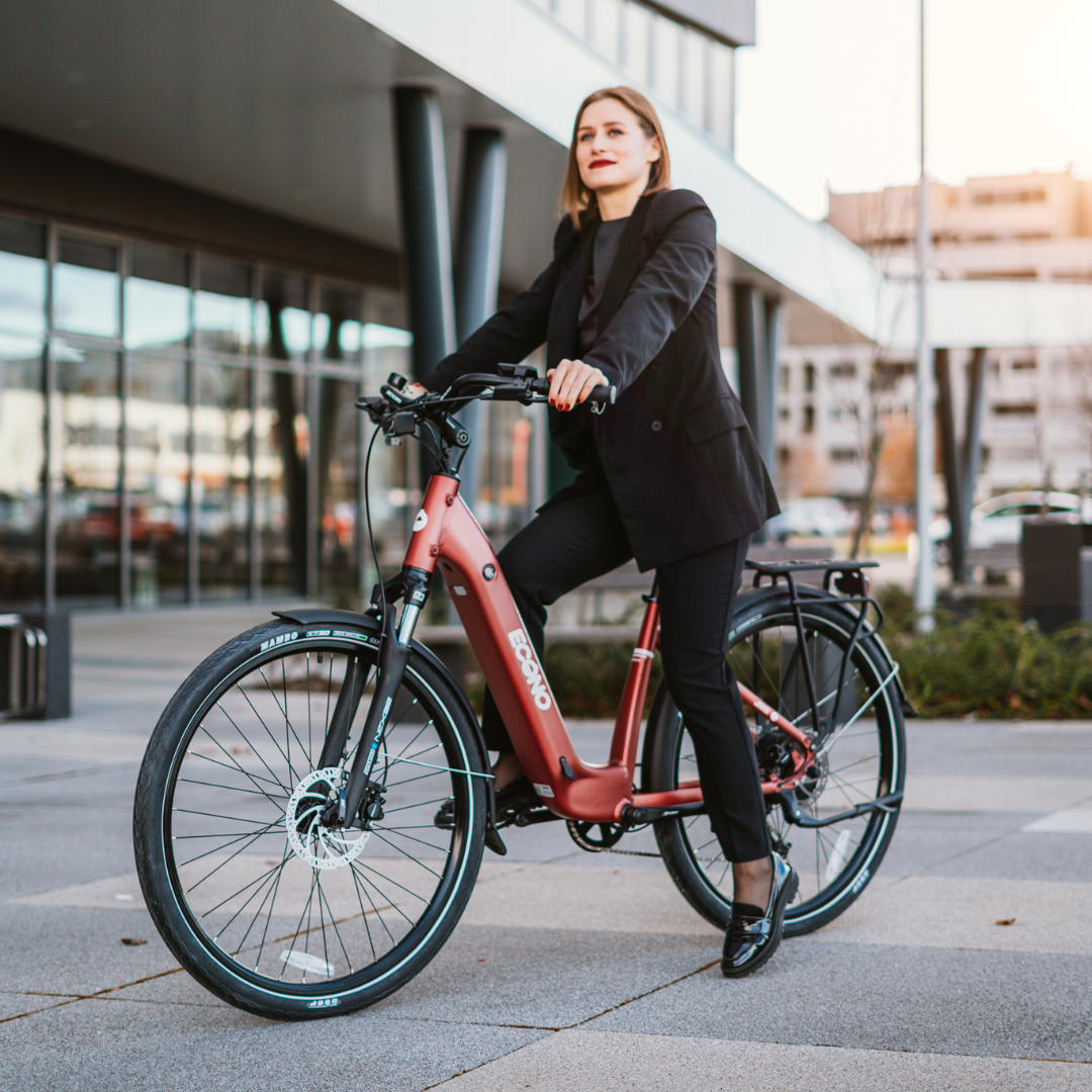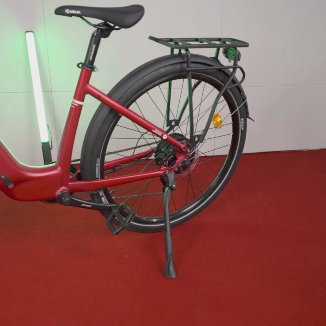 The ECONO Apes EER4 is engineered around a 6061 aluminum alloy frame designed for lightweight strength and corrosion resistance. A city-style geometry with an upright seating position reduces rider fatigue, while the adjustable stem (0–90°) and ergonomic 680 mm handlebars allow a customizable fit. The Velo VL-3644 saddle and 30.9 mm seatpost provide wide, cushioned support for longer rides. At 22.6 kg (without battery), the EER4 maintains easy handling for storage and transport. The Bafang DP C080 side-mounted TFT display provides clear data visualization, including five assistance modes: ECO, TOUR, SPORT, SPORT+, and BOOST. Integrated blatniki (mudguards), kickstand, and MIK-compatible rear rack add everyday convenience. With its clean design and functional ergonomics, the Apes EER4 balances comfort, utility, and performance for daily commuting and relaxed leisure rides.