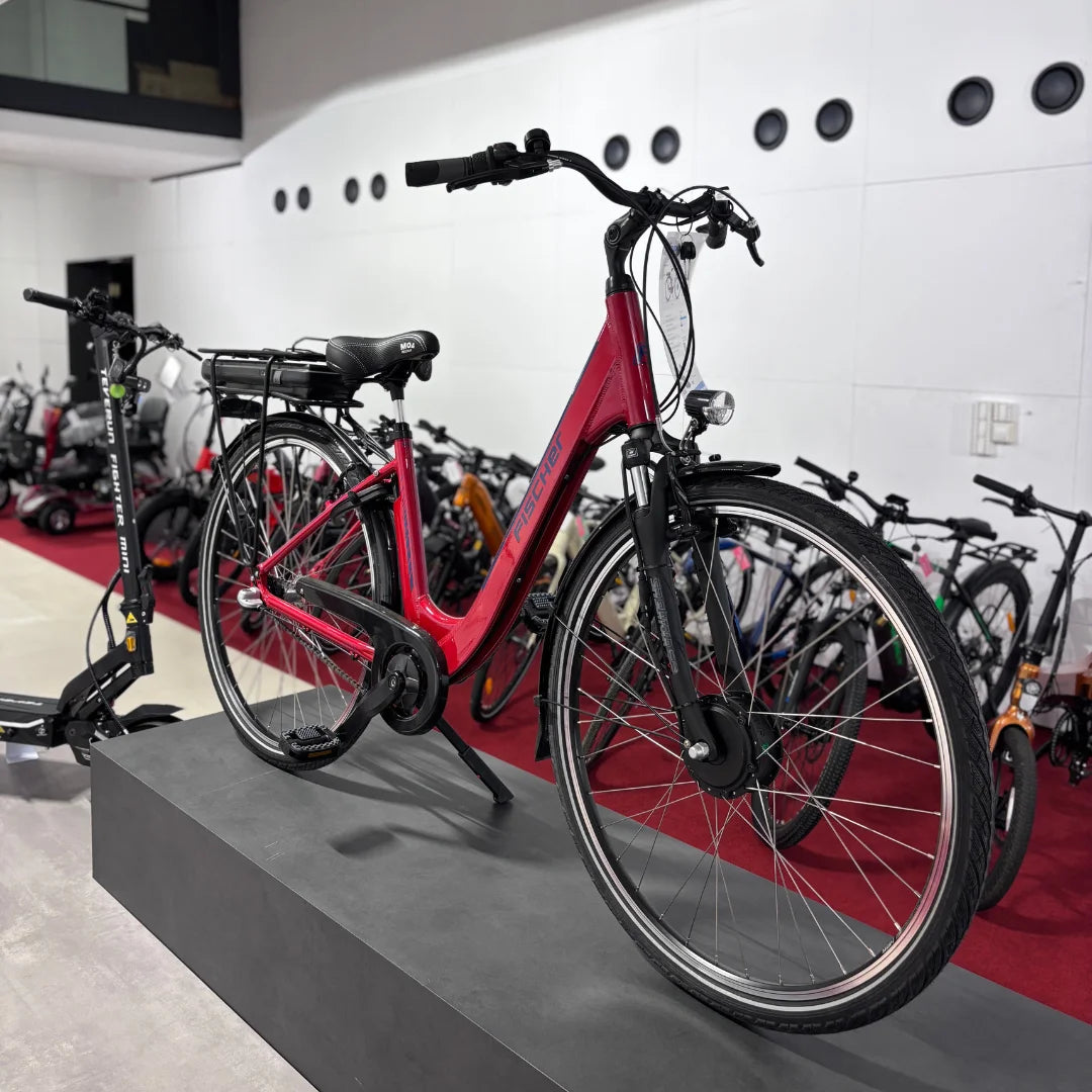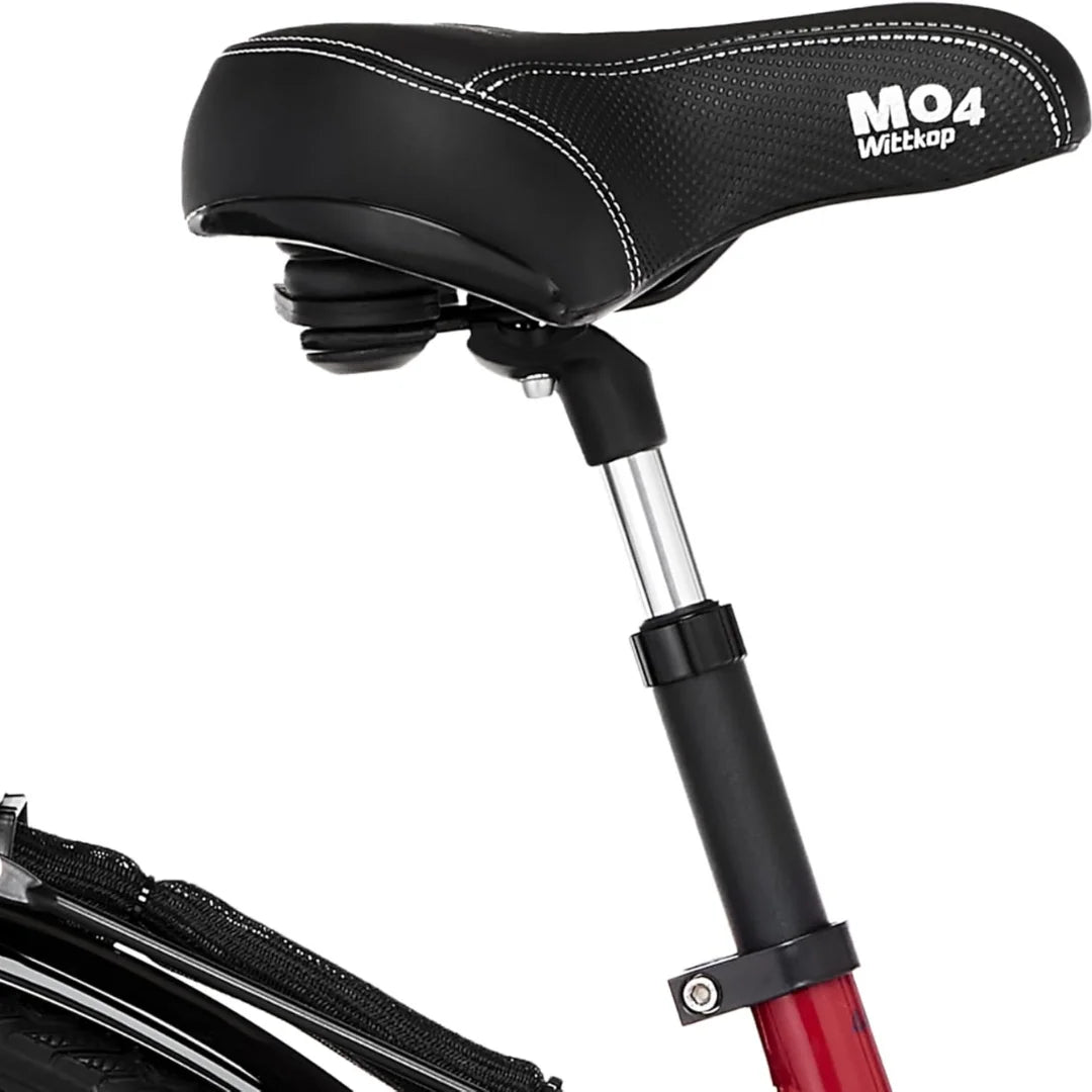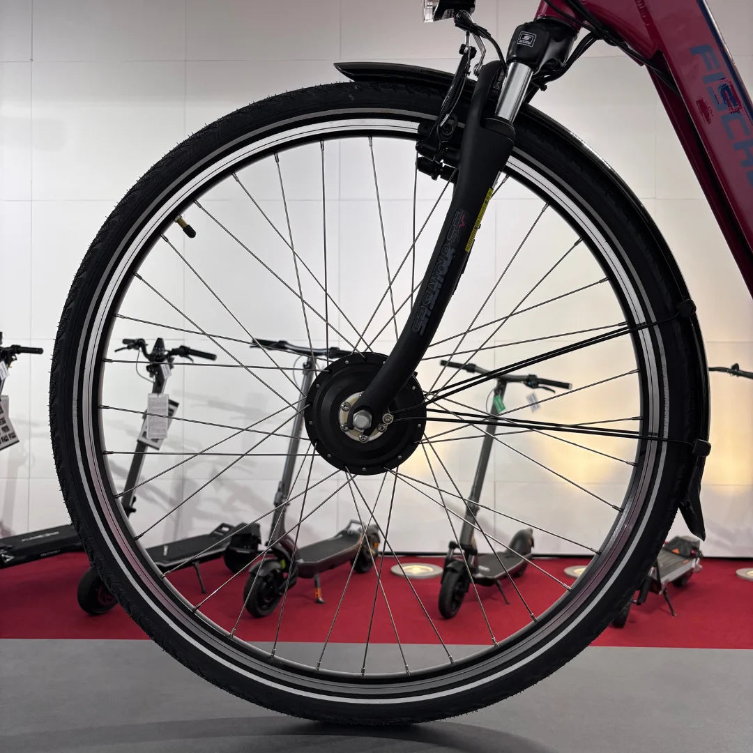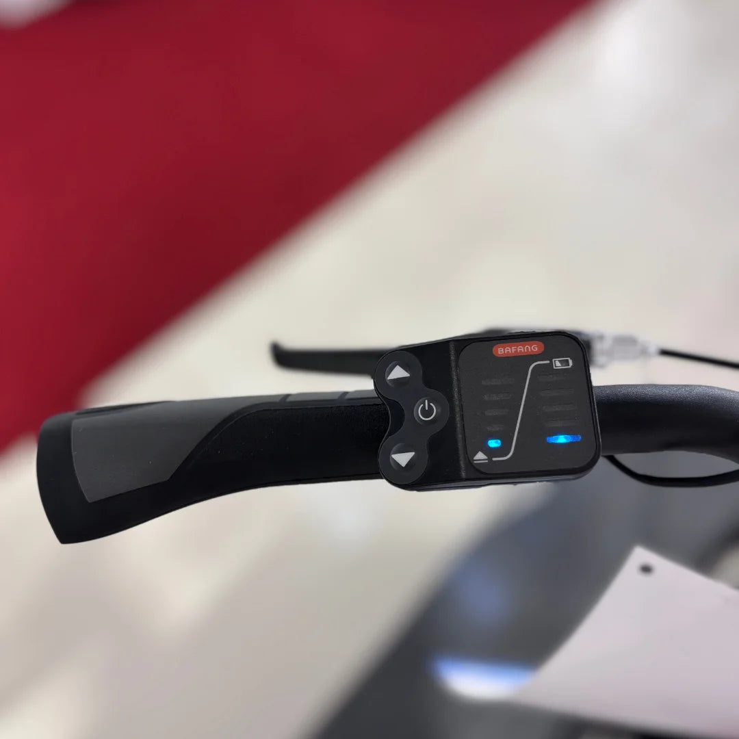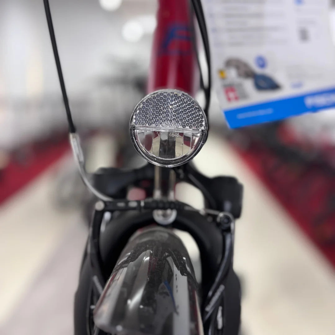 Upright geometry and a low-step aluminum frame make mounting/dismounting effortless. The front suspension and spring-loaded Humpert Ergotec seatpost enhance ride comfort over bumps. The LED display on the Bafang LED 350 CAN Bus control panel keeps interface clean and intuitive. Included accessories—rear rack, integrated frame lock, and reflective tire sidewalls—balance practicality with modern design aesthetics.