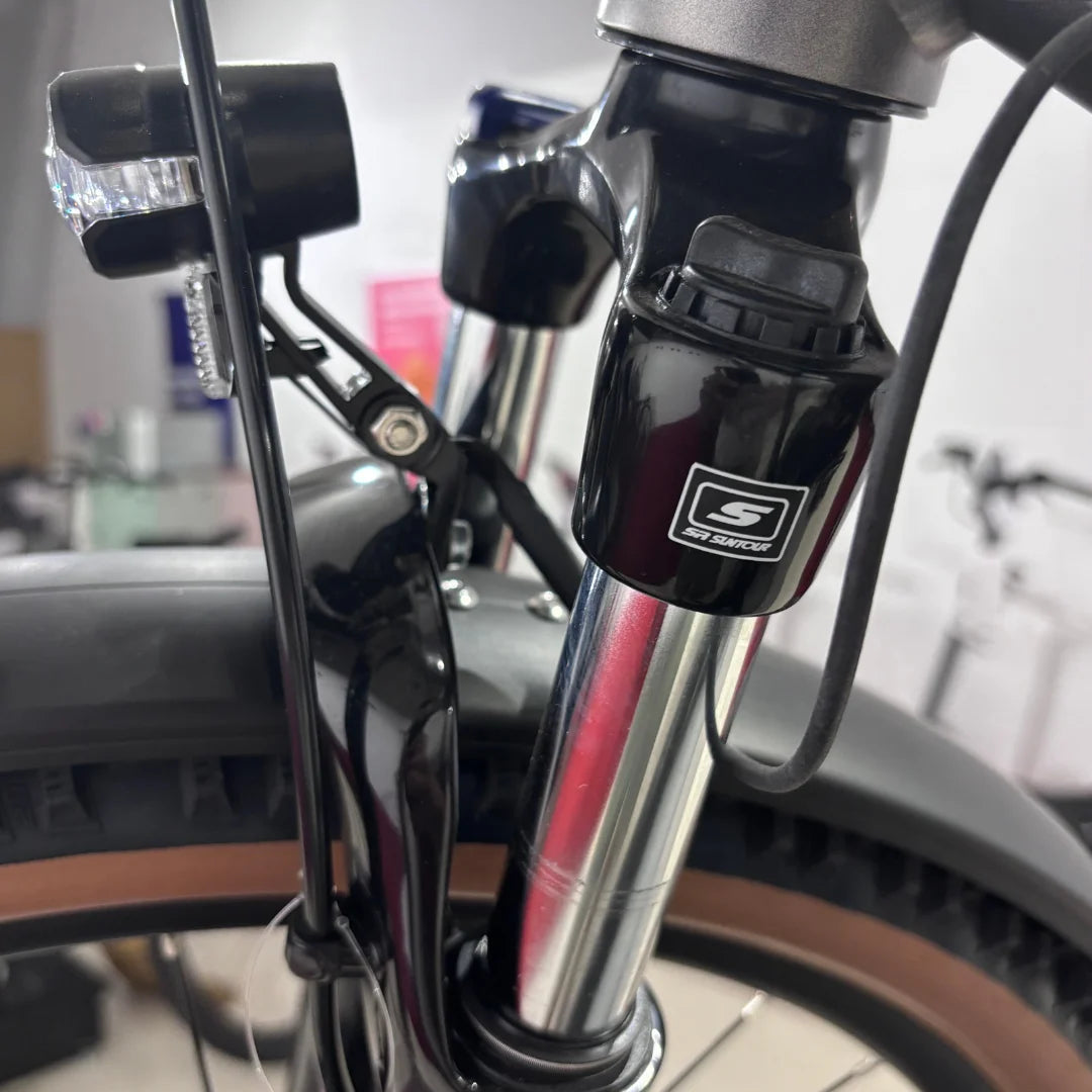 Lubricate the chain every 200–300 km or after wet conditions. Check tire pressure weekly (3.5–4.0 bar recommended) and inspect brake pads every 500 km. Recharge the battery after each ride and avoid complete discharge to prolong service life. Service the SR Suntour XCR32 suspension fork every 100 riding hours. Perform a full Bosch system diagnostic at an authorized service center annually to ensure optimal motor and battery performance.