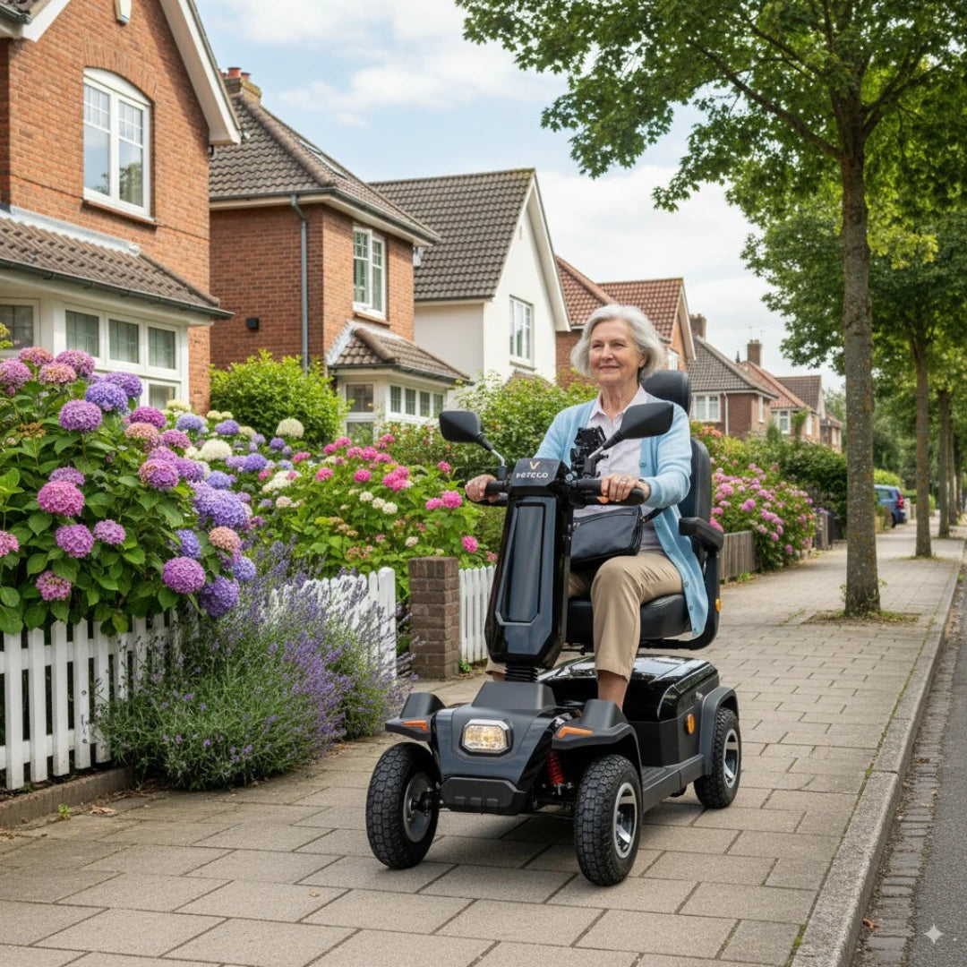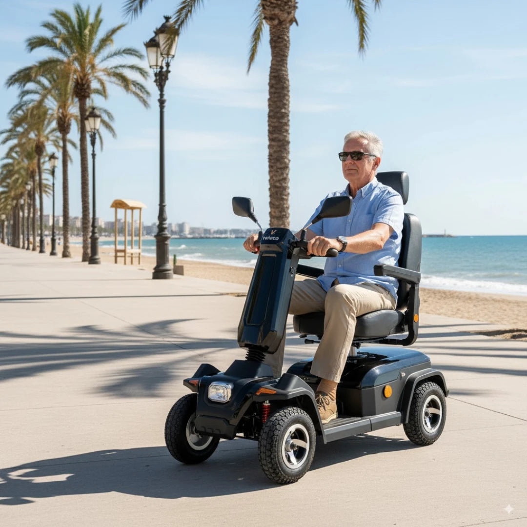 Experience unparalleled comfort and design with the SHARPY mobility scooter. It features a swivel captain seat, adjustable elements, and ample legroom for a relaxed and enjoyable ride. Every journey is crafted for your utmost comfort.