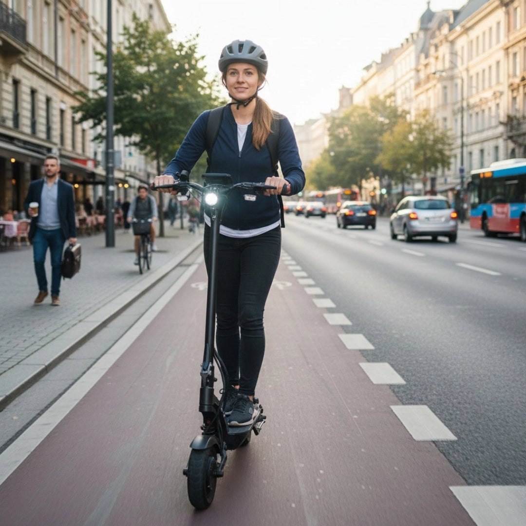 Be visible and safe in all lighting conditions. The Mantis X Plus features a comprehensive lighting system that includes a powerful front LED headlight, a rear light, and integrated front and rear turn signals with E-Mark certification. A special feature is the side LED strips, whose color can be freely changed via the mobile app. This 360-degree visibility significantly improves your safety on the road.