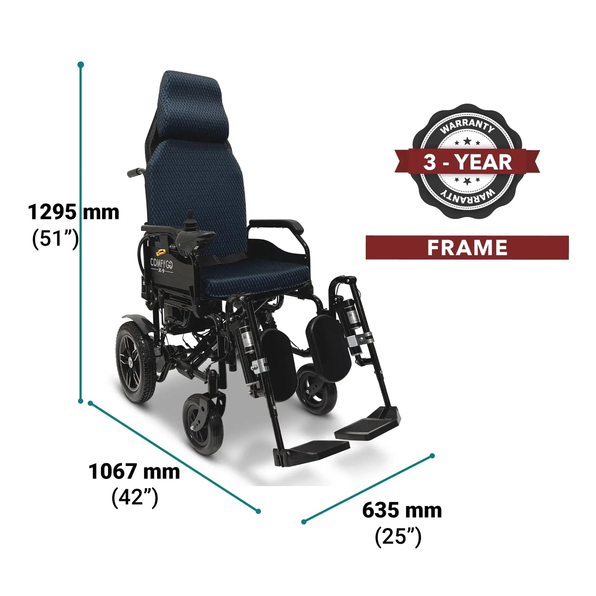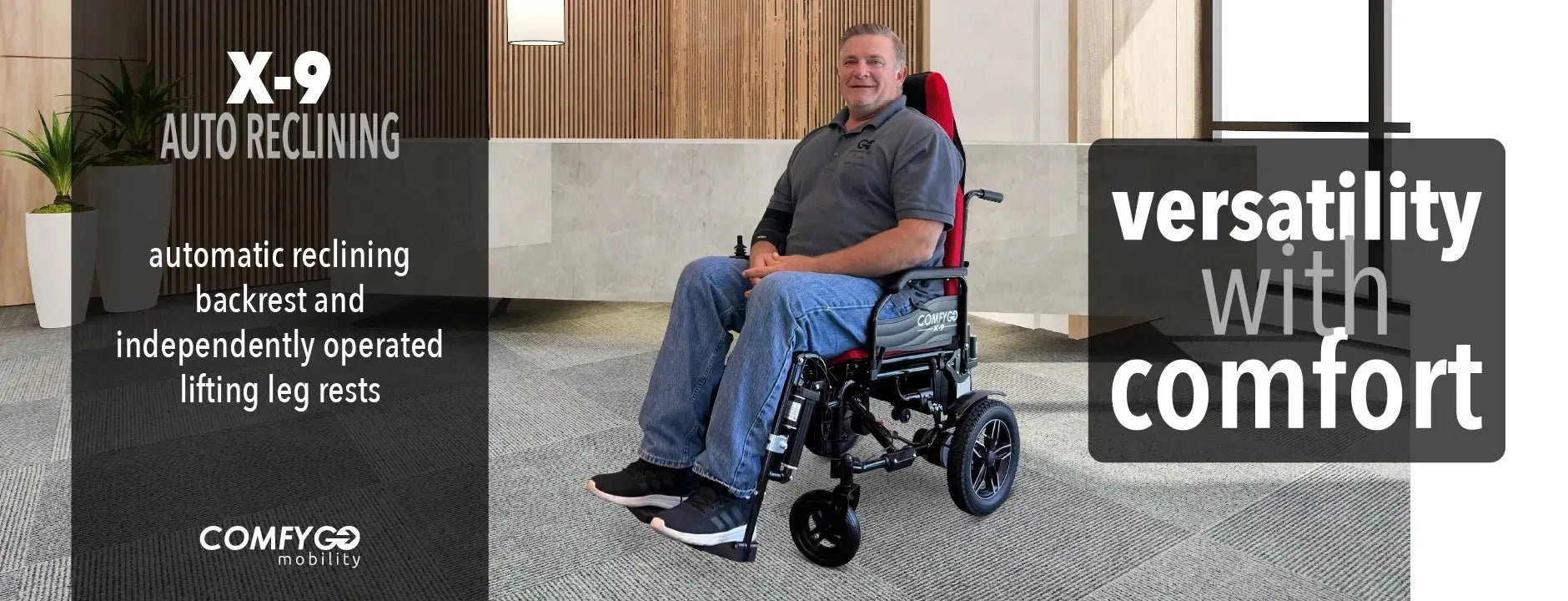 The ComfyGO X-9 electric wheelchair is the ideal solution for users looking for premium comfort, independence, and flexibility. Thanks to the automatic backrest recline function and independent legrest elevation, it is perfect for those who need frequent position changes to relieve pressure. Its foldable design and remote control capability make it indispensable for active individuals and travelers who do not want to sacrifice comfort on airplane or cruise ship trips.
