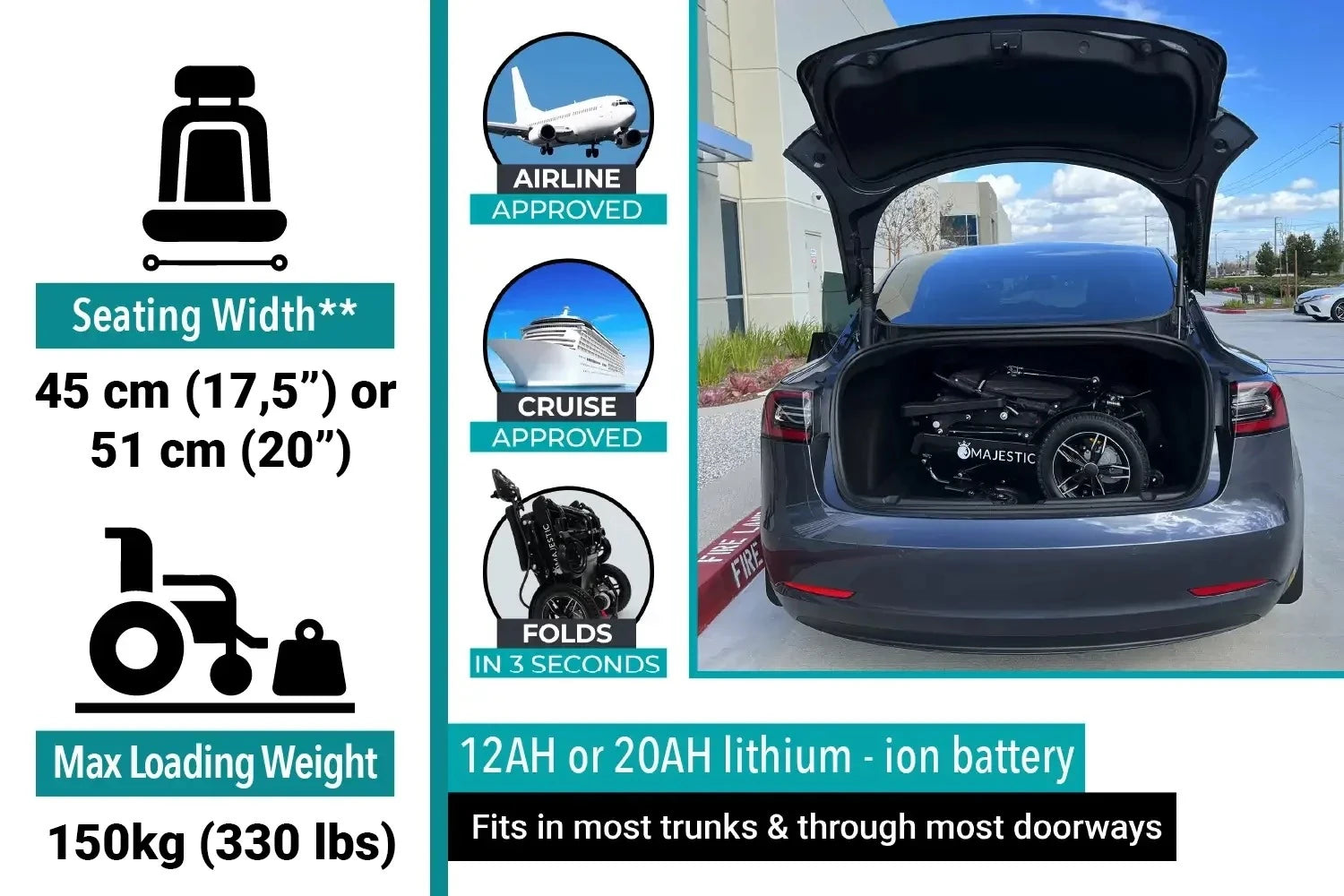 MAJESTIC IQ-8000 is the ideal choice for users looking for a lightweight and foldable electric wheelchair, suitable for travel by plane or cruise ship (with the 12AH battery). Thanks to its unique remote control feature, it is also excellent for caregivers who can operate the wheelchair from a distance. It is intended for everyone who values memory foam comfort and wants reliability on various terrains without compromising on mobility.