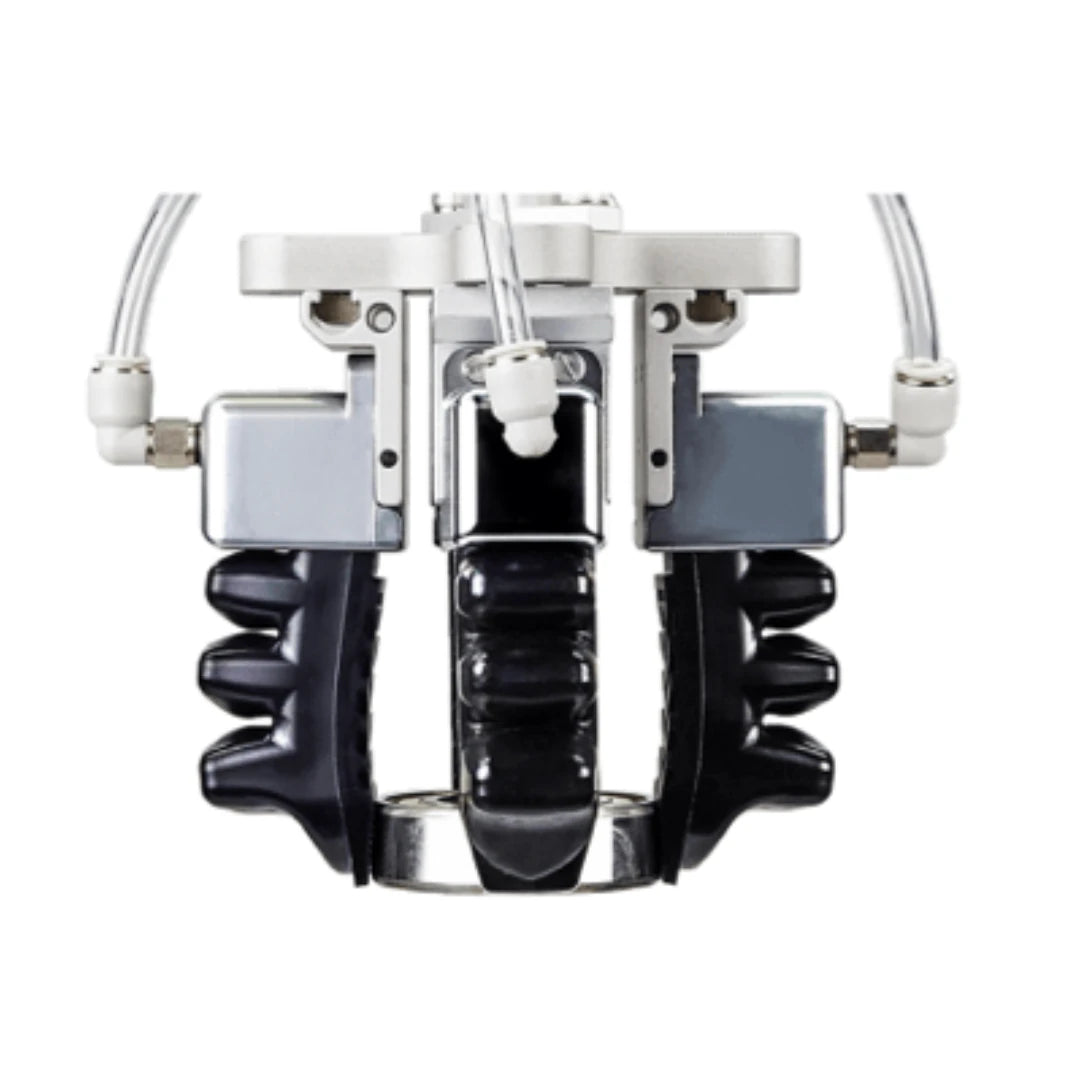 Končni del roke (prirobnica) omogoča hitro menjavo različnih efektorjev – od električnih prijemal (gripperjev) in sesalnih čepov do izvijačev in kamer. Roka komunicira preko zanesljivega Ethernet vmesnika, za notranjo komunikacijo pa uporablja RS485. Napaja se preko standardnega 24V vira, kar olajša integracijo v obstoječe industrijske sisteme.