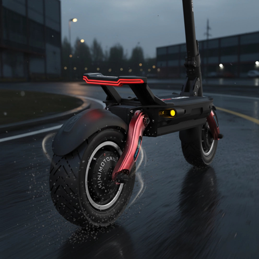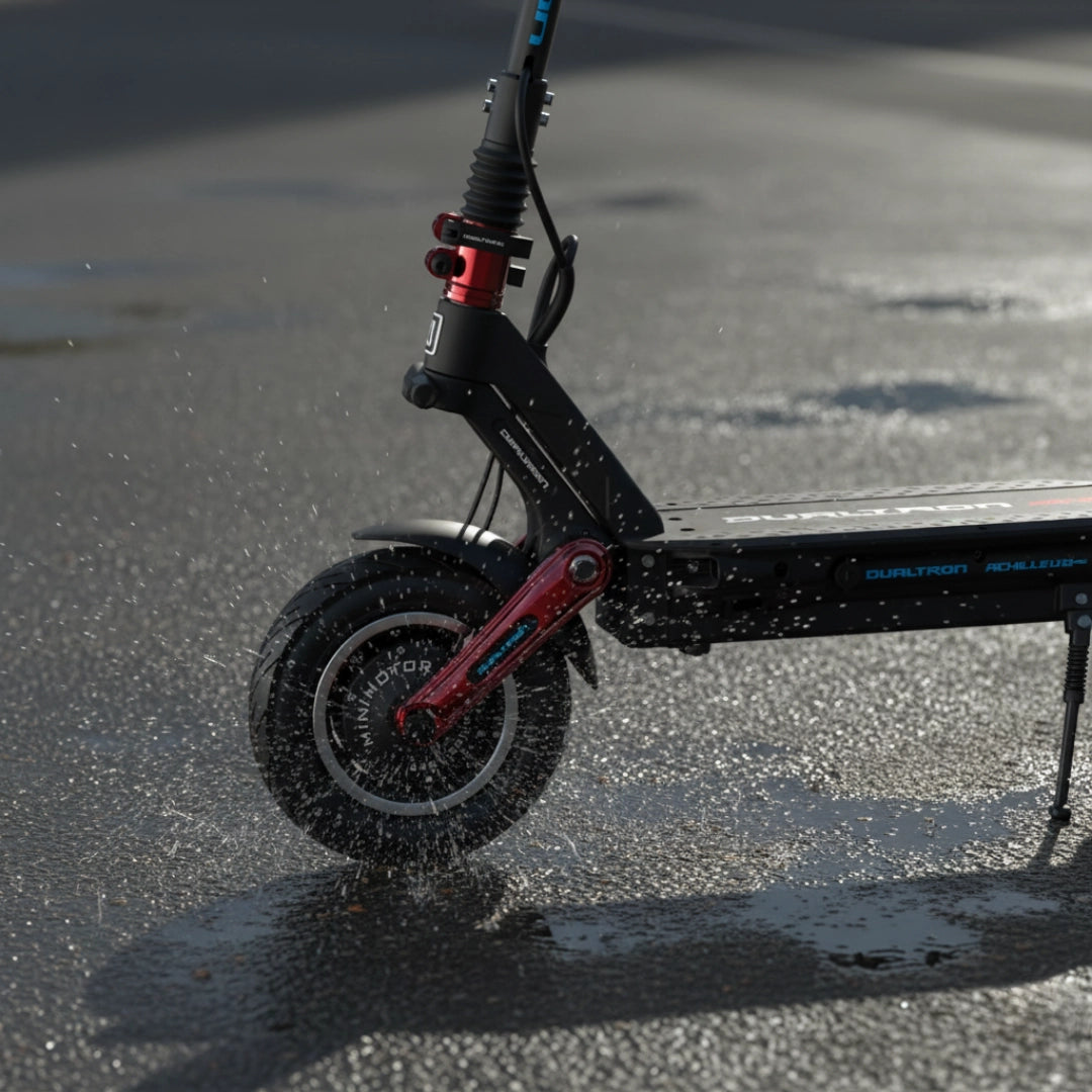 Dualtron Achilleus poganjata dva zmogljiva motorja s skupno maksimalno močjo 4648W, ki ju krmilita dva 35A krmilnika. Ta konfiguracija zagotavlja bliskovite pospeške in z lahkoto premaguje strme klance z naklonom do 58% (približno 30°). Z gumbom za izbiro pogona lahko preklapljate med enim ali dvema motorjema in tako prilagodite vožnjo trenutnim potrebam – od varčnega načina do polne moči.