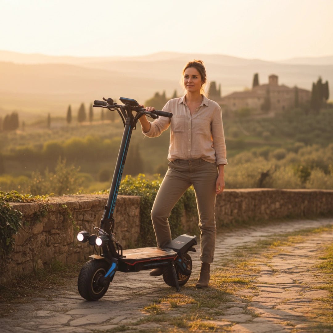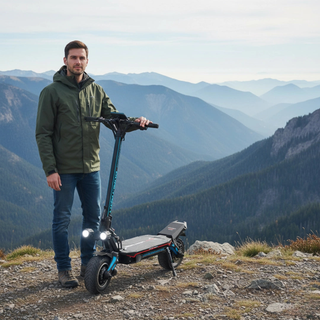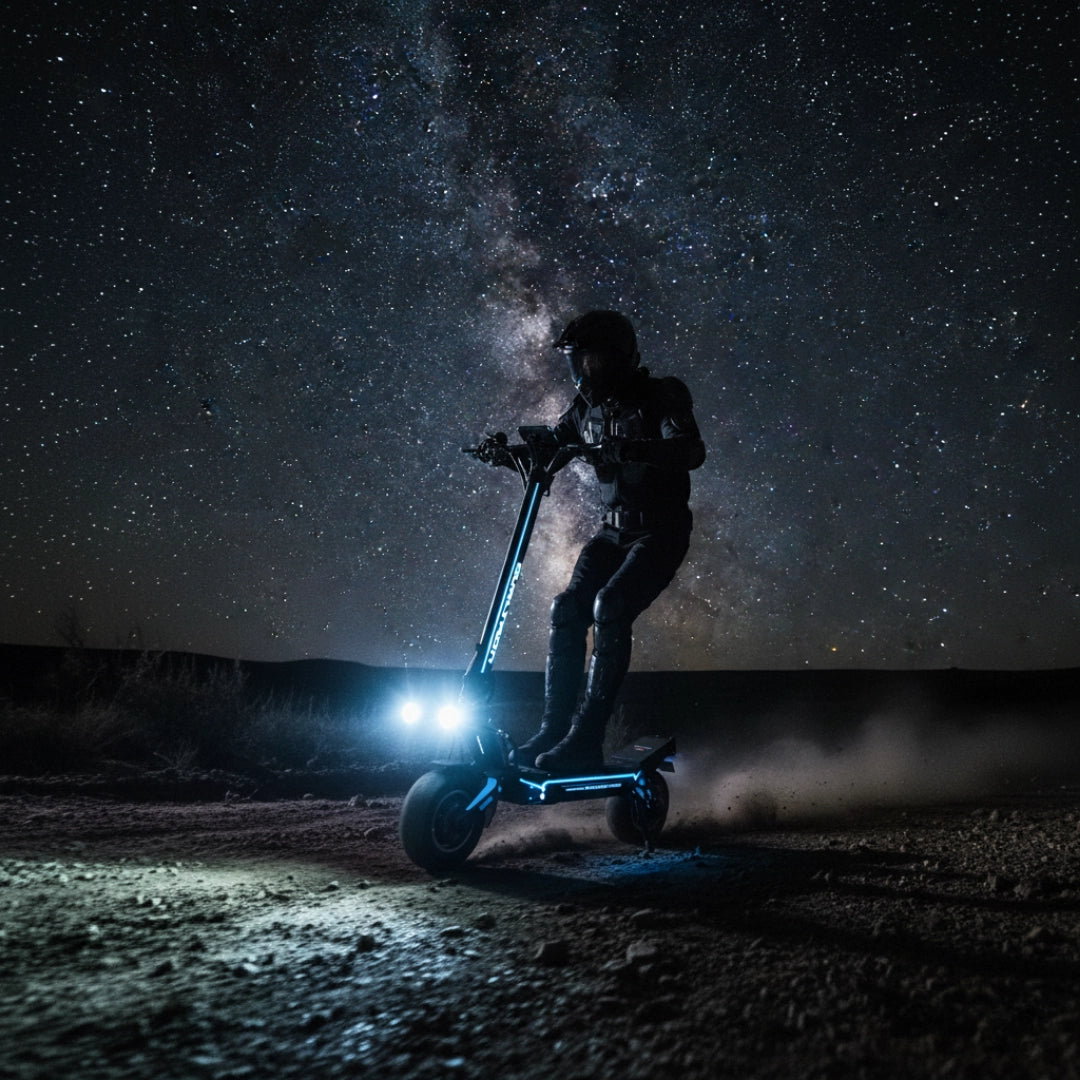 V srcu skiroja Storm Limited se skriva zverinska moč. Dva brezkrtačna motorja s skupno maksimalno močjo neverjetnih 11.500 W ga uvrščata med najmočnejše serijske električne skiroje na svetu. Ta izjemna moč zagotavlja osupljive pospeške in suvereno premagovanje klancev z naklonom do 76% (37°), hkrati pa ohranja stabilnost in popoln nadzor v vseh pogojih.