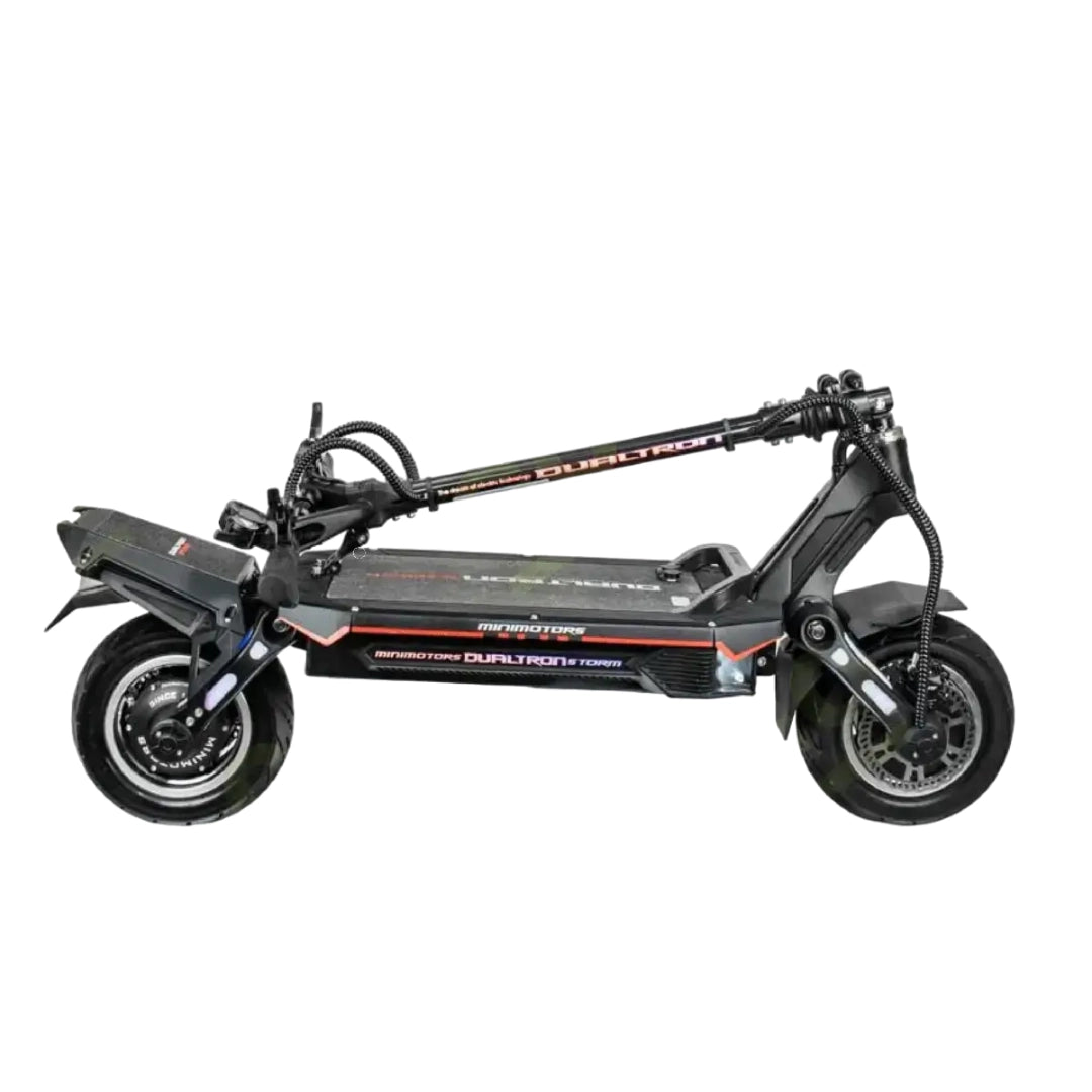 Dualtron Storm Up je prvi Dualtron z edinstveno zasnovo snemljive baterije. Visokozmogljiva baterija 72V 35Ah LG omogoča osupljiv doseg do 120 km. Baterijo lahko enostavno odstranite in jo polnite kjerkoli – doma, v pisarni ali garaži. Ta inovacija vam daje popolno svobodo in praktičnost, saj lahko imate vedno pripravljeno polno baterijo za naslednjo avanturo.