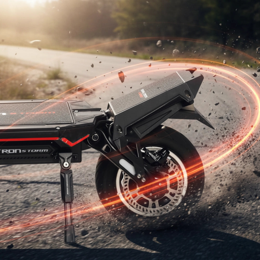 Doživite neprimerljivo moč z dvema brezkrtačnima motorjema, ki skupaj ustvarita neverjetno maksimalno moč 6.640W. V kombinaciji z dvema 40A krmilnikoma ta "kralj gora" z lahkoto premaguje klance z naklonom do 35 stopinj (70%). Dinamični pospeški in osupljiva odzivnost vam zagotavljajo izkušnjo, ki presega vsa pričakovanja in postavlja nove standarde v svetu električnih skirojev.