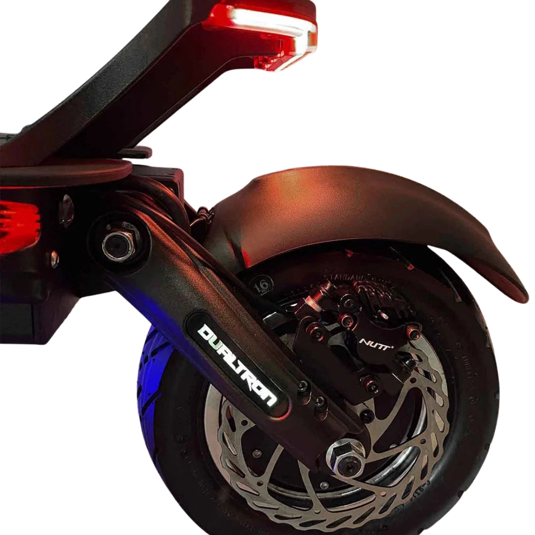 Dualtron Thunder 2 zagotavlja izjemno udobje in stabilnost na vsaki podlagi. Opremljen je z naprednim gumijastim vzmetenjem spredaj in zadaj, ki uporablja 5 različnih tipov zamenljivih kartuš za popolno prilagoditev trdote. V kombinaciji z ultra-širokimi 11-inčnimi tubeless pnevmatikami boste uživali v gladki in suvereni vožnji, ne glede na to, ali drvite po asfaltu ali raziskujete gozdne poti.