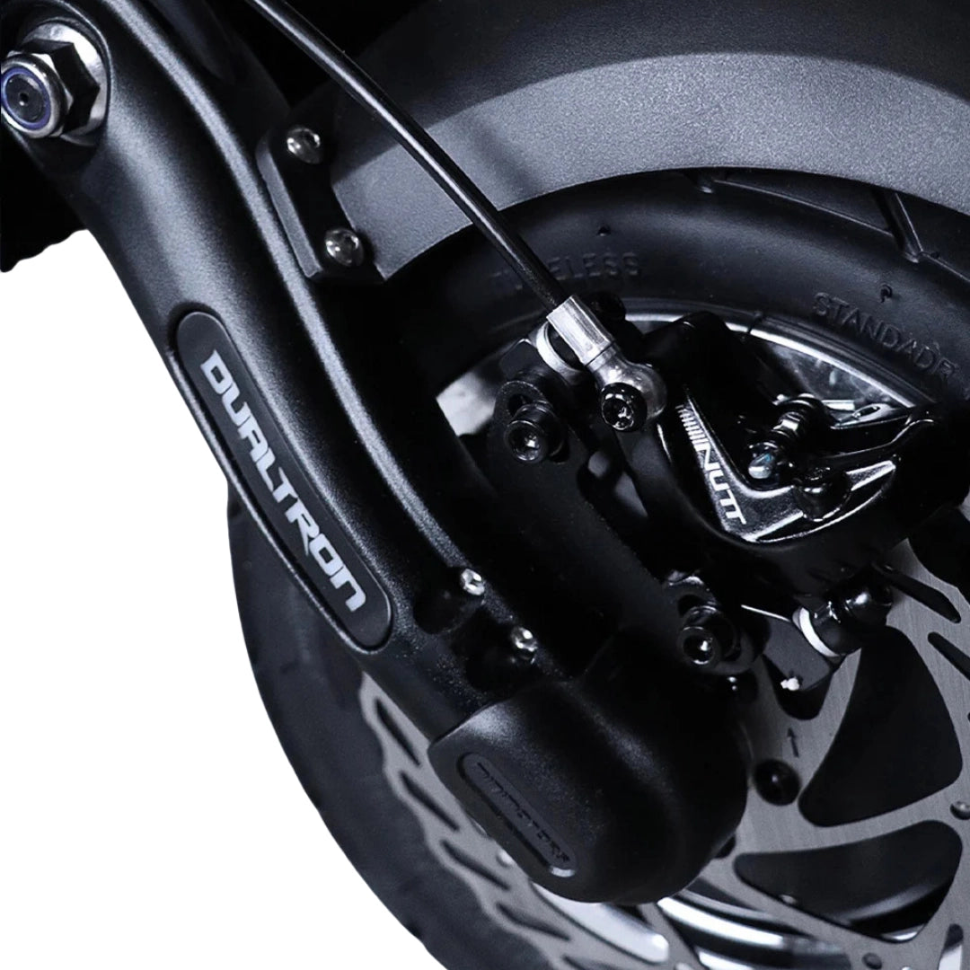 Zmogljivost zahteva popoln nadzor. Za to skrbijo 4-batne hidravlične disk zavore NUTT (160 mm) z integriranim hlajenjem, ki zagotavljajo izjemno zavorno moč. Dopolnjuje jih močna magnetna zavora. Za udobje in stabilnost skrbi nastavljivo gumijasto vzmetenje (5 vrst kartuš) v kombinaciji z ultra širokimi 11-inčnimi "tubeless" pnevmatikami in serijsko vgrajenim smernim stabilizatorjem krmila.