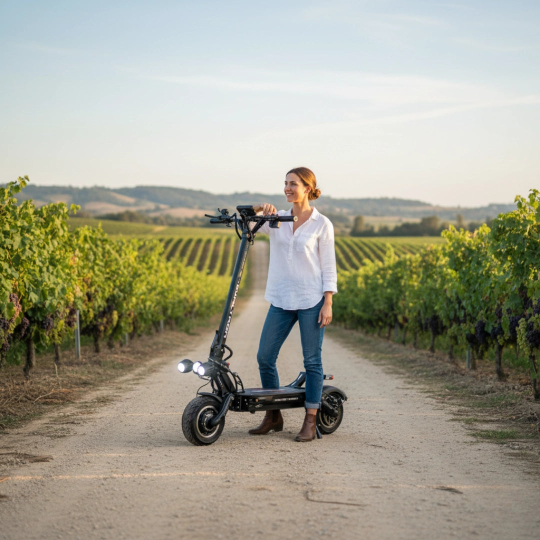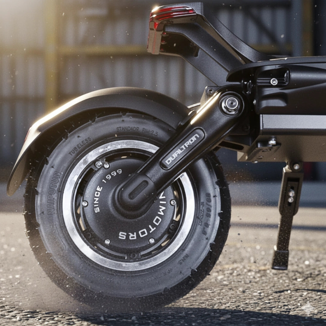Srce skiroja sta dva izjemno zmogljiva BLDC motorja z nazivno močjo 2x 2500W, ki v vrhuncih sprostita neverjetno moč preko 10.800W. Ta surova moč zagotavlja pospeške, ki vas bodo pritisnili nazaj, in omogoča suvereno premagovanje najstrmejših klancev. Za dodaten adrenalin je na voljo funkcija "OVERTAKE", ki začasno poveča moč za še hitrejše delovanje.