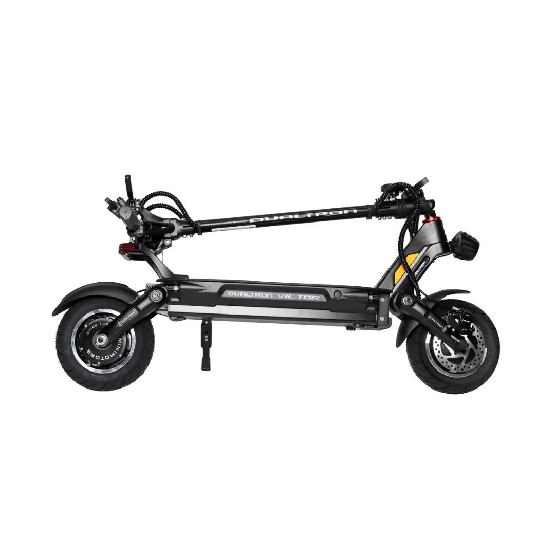 Električni skiro Dualtron Victor Luxury Plus NEW je zasnovan za voznike, ki iščejo popolno ravnovesje med hitrostjo, dosegom, udobjem in stilom. Posebej je prilagojen za višje in večje uporabnike, ki potrebujejo več prostora in udobja, saj ponuja daljše krmilo in razširjeno stojišče. Je idealna izbira za tiste, ki želijo premium izkušnjo tako v mestnem okolju kot na zahtevnejših terenih, brez kompromisov pri kakovosti in funkcionalnosti.
