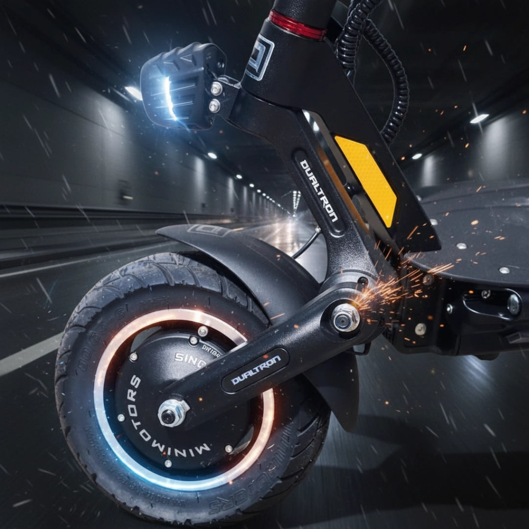 V srcu skiroja Victor Luxury Plus NEW sta dva brezkrtačna motorja s skupno nominalno močjo 2600W in maksimalno močjo, ki presega 4300W. V kombinaciji s 60V sistemom in pametnim krmilnikom skiro zagotavlja impresivne pospeške, takojšnjo odzivnost in suvereno premagovanje klancev z naklonom do 70% (35°). Vožnja je gladka in nadzorovana tudi pri višjih hitrostih.
