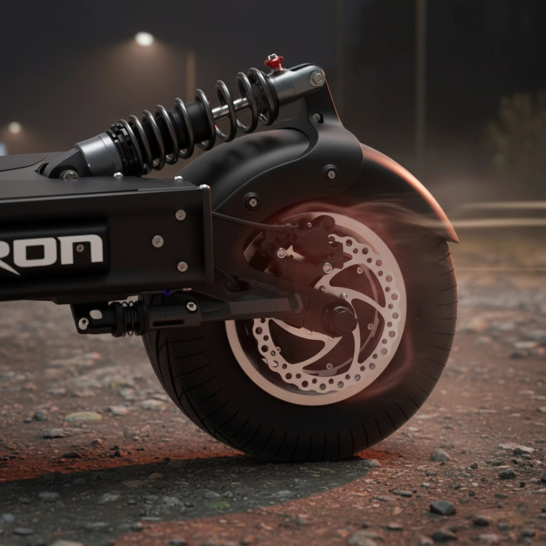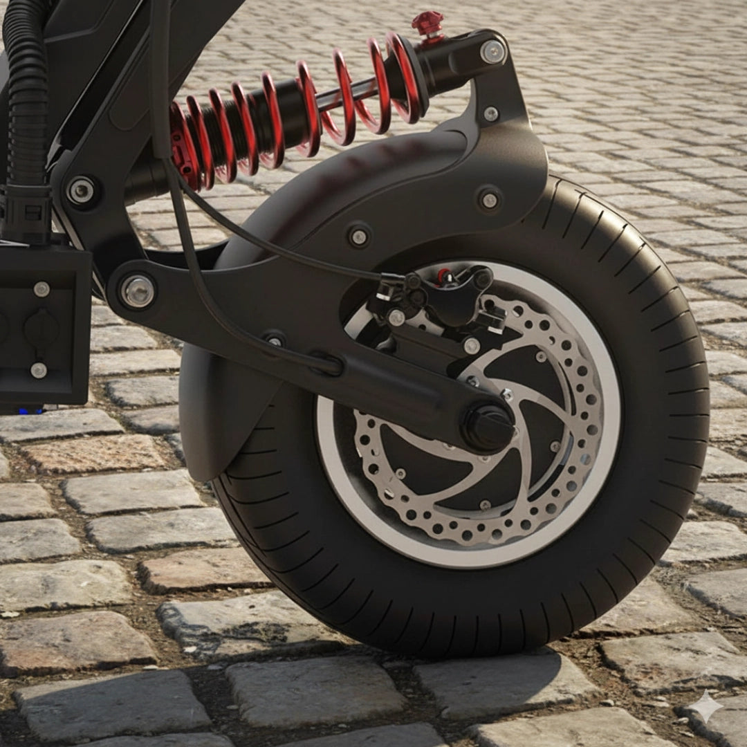 Srce te zveri sta dva visoko učinkovita BLDC HUB motorja, ki skupaj sprostita surovo moč preko 8300W. Pospešek je takojšen in agresiven, skiro vas dobesedno izstreli naprej. Z lahkoto premaguje klance z naklonom do 70% (35°), pri tem pa ohranja neverjetno stabilnost in nadzor.