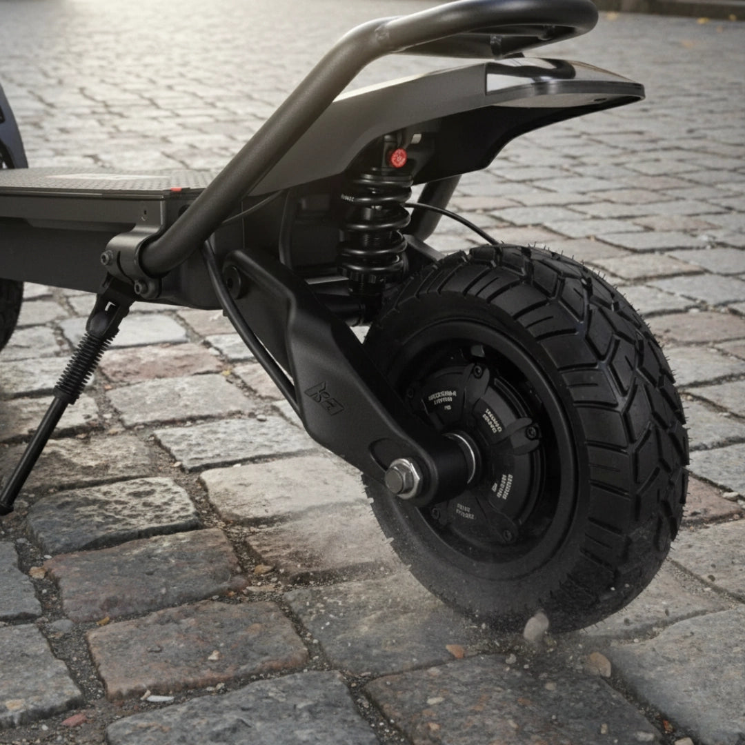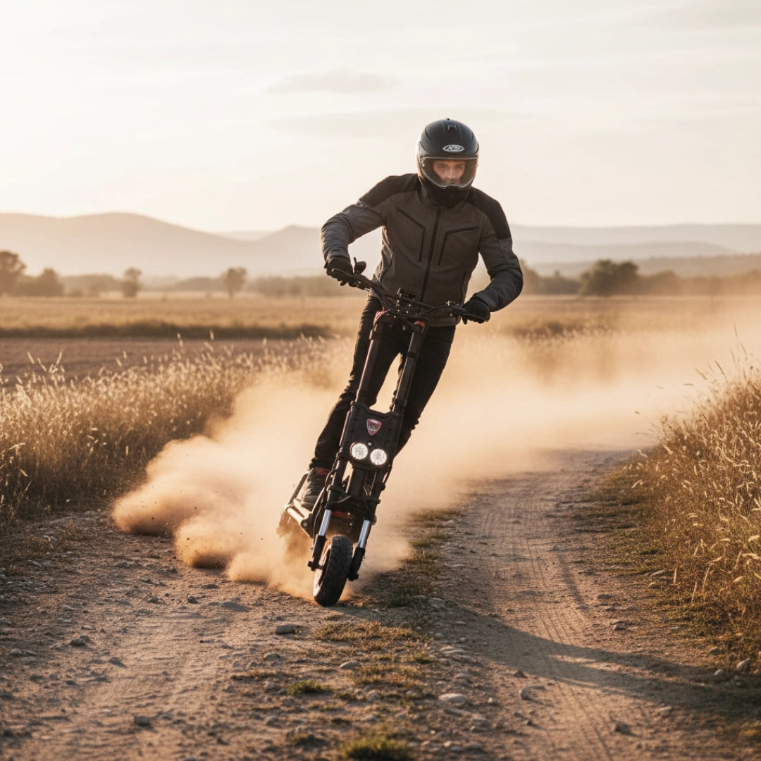 Srce Wolf King GTR MAX sta dva zmogljiva motorja z nazivno močjo 2 x 2000 W, ki v končni fazi dosežeta neverjetnih 13.440 W. Vse to upravlja inteligenten dvojni 72V 100A "two-in-one" sine wave krmilnik, ki zagotavlja izjemno odzivnost in gladko pospeševanje. Z možnostjo preklopa med pogonom na en ali dva motorja (Single/Dual Drive) lahko enostavno izbirate med maksimalno učinkovitostjo za daljši doseg ali surovo močjo za neprimerljivo vozno izkušnjo.