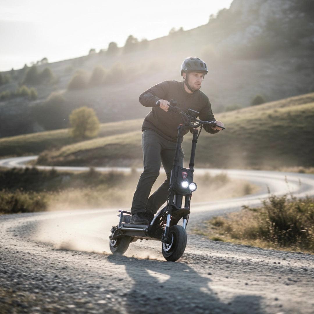 Kaabo Wolf King GTR MAX je zasnovan za najbolj zahtevne voznike, ki iščejo vrhunsko moč, stabilnost, ekstremni doseg in najnovejšo tehnologijo v enem brezkompromisnem paketu. Je idealna izbira za adrenalinske navdušence in izkušene uporabnike, ki želijo premikati meje zmogljivosti tako na asfaltu kot na zahtevnejših terenih. To ni le prevozno sredstvo, temveč sinonim za moč, prestiž in inženirsko dovršenost.