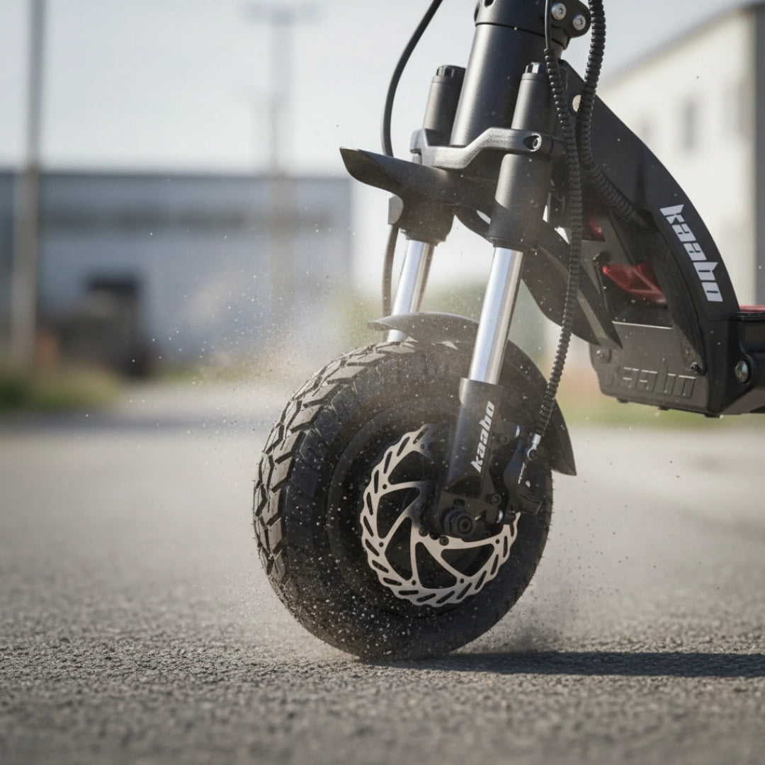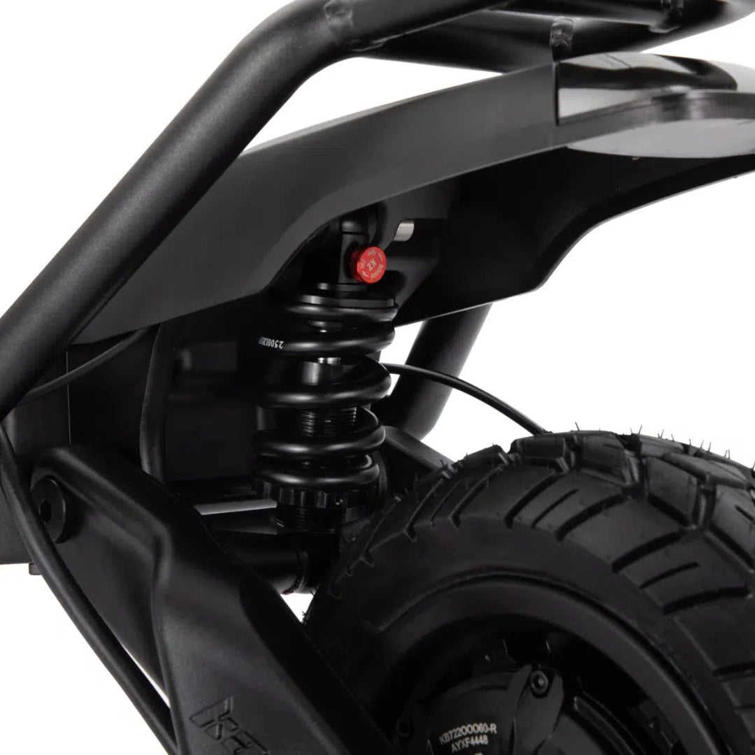 Ne glede na podlago, Wolf King GTR MAX zagotavlja izjemno udobje in stabilnost. Spredaj je opremljen z robustno motociklistično dvojno hidravlično vilico, zadaj pa z naprednim nastavljivim hidravličnim vzmetenjem. V kombinaciji z velikimi 12-palčnimi vakuumskimi pnevmatikami CST (100-55-7) skiro ponuja vrhunski oprijem in mirno vožnjo tudi pri višjih hitrostih ali na neravnih površinah.