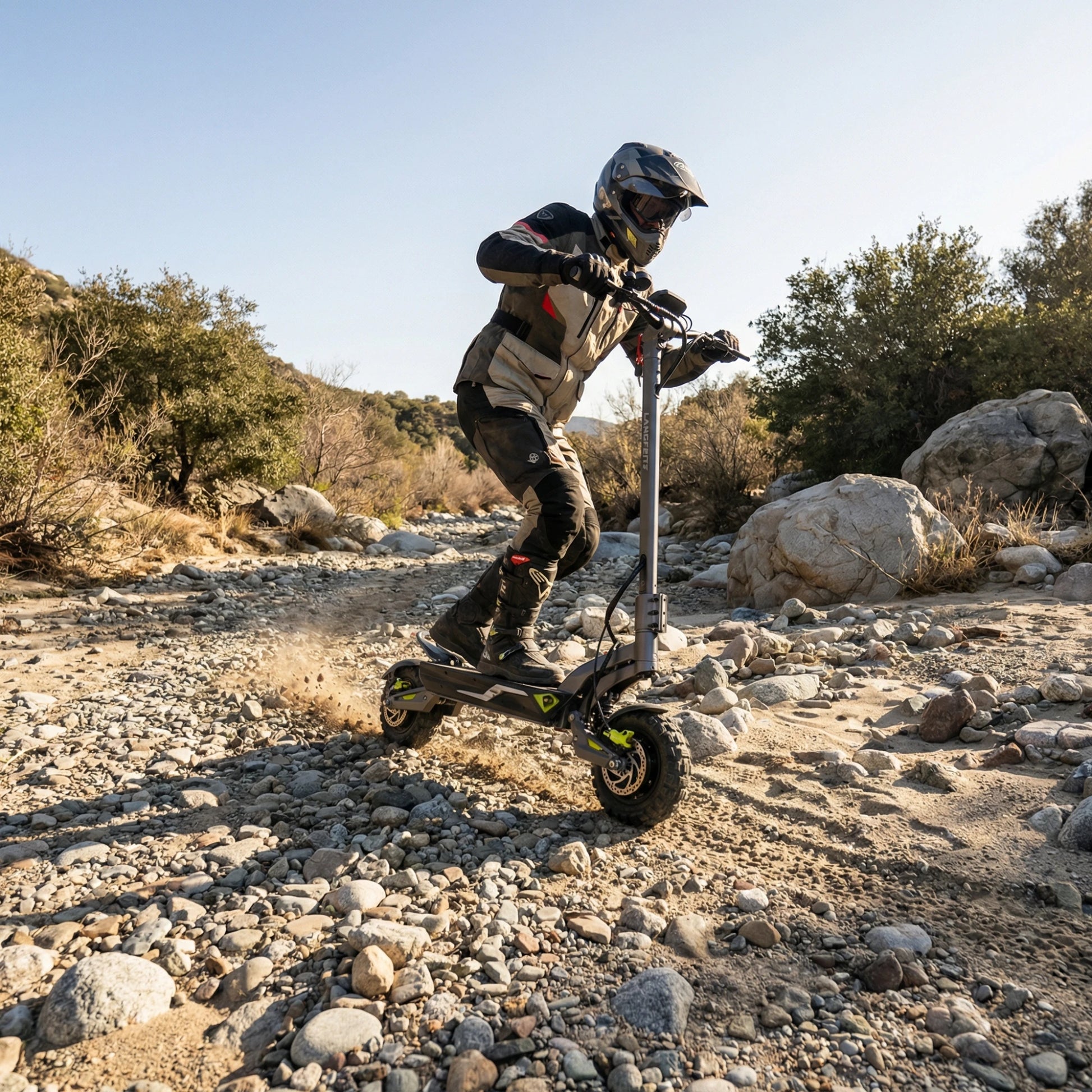 Električni skiro Langfeite C1 je ustvarjen za zahtevne uporabnike in ljubitelje adrenalina, ki ne pristajajo na kompromise. Zaradi svoje izjemne moči, velikega dosega in robustne konstrukcije je idealen za tiste, ki potrebujejo zanesljivo prevozno sredstvo za dolge razdalje ali pa želijo uživati v dinamični vožnji po razgibanem terenu. Če iščete skiro, ki združuje hitrost, udobje in vrhunsko tehnologijo, je C1 prava izbira za vas.