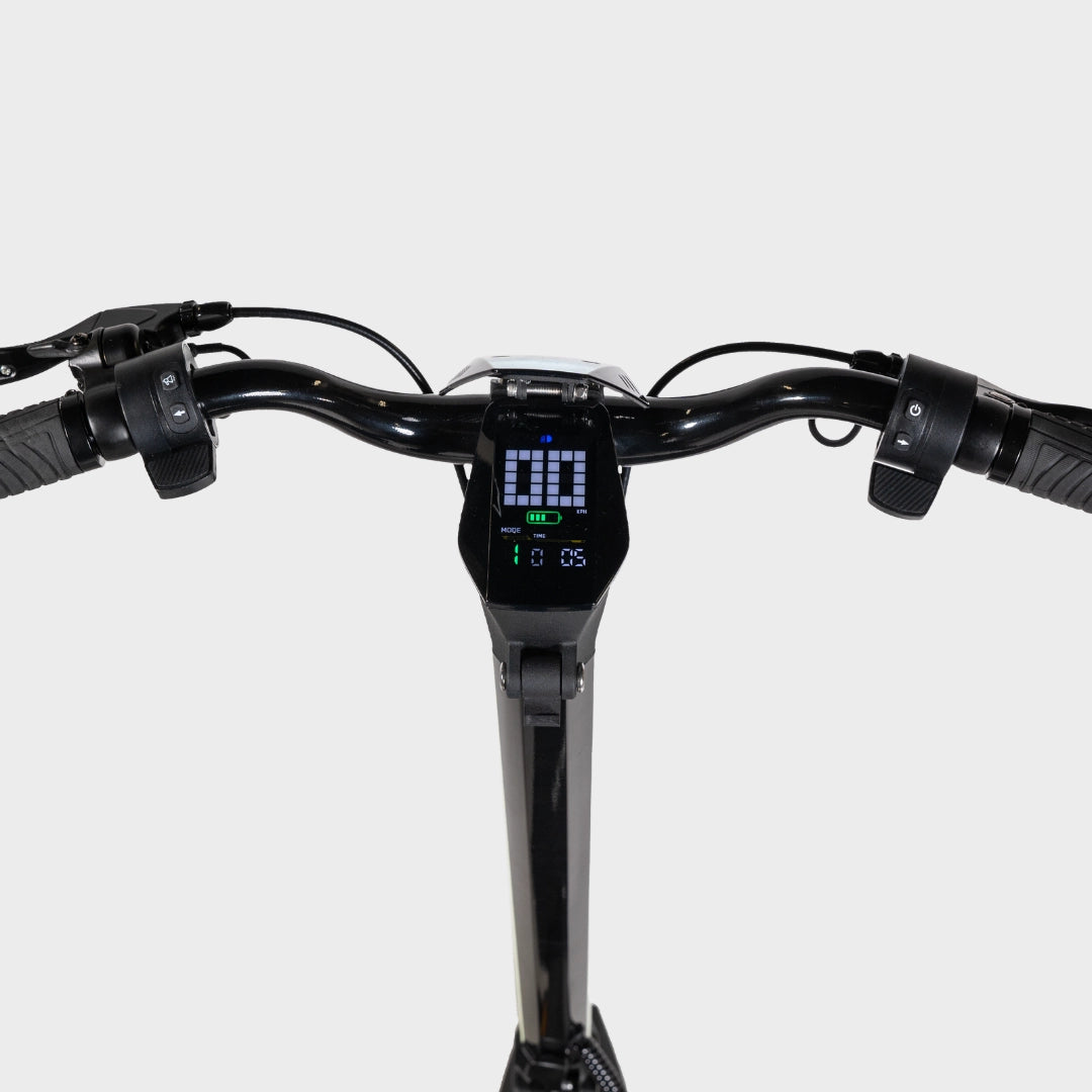 Vse informacije o vožnji so vam na voljo na preglednem LCD zaslonu, ki jasno prikazuje hitrost, stanje baterije in način vožnje. Za maksimalno vidnost in varnost poskrbi celovit sistem luči, ki vključuje sprednjo LED luč, zadnjo zavorno luč in smerne kazalce. Povežite skiro z aplikacijo Vicont in prilagodite nastavitve pospeševanja po svojih željah.