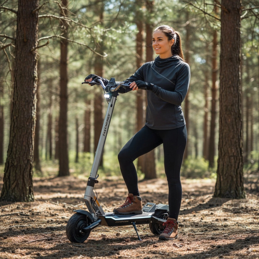 Električni skiro MS Energy Flare X je zasnovan za urbane pustolovce, ki si želijo močnega pospeška, udobne vožnje in izjemnega dosega. S svojo dvojno močjo motorjev je idealen za tiste, ki se vsakodnevno soočajo z mestnimi klanci ali preprosto želijo dinamično in odzivno vožnjo. Je odlična izbira za uporabnike, ki iščejo zanesljiv, vzdržljiv in tehnološko napreden skiro za vsakodnevne poti in daljše izlete po mestu.
