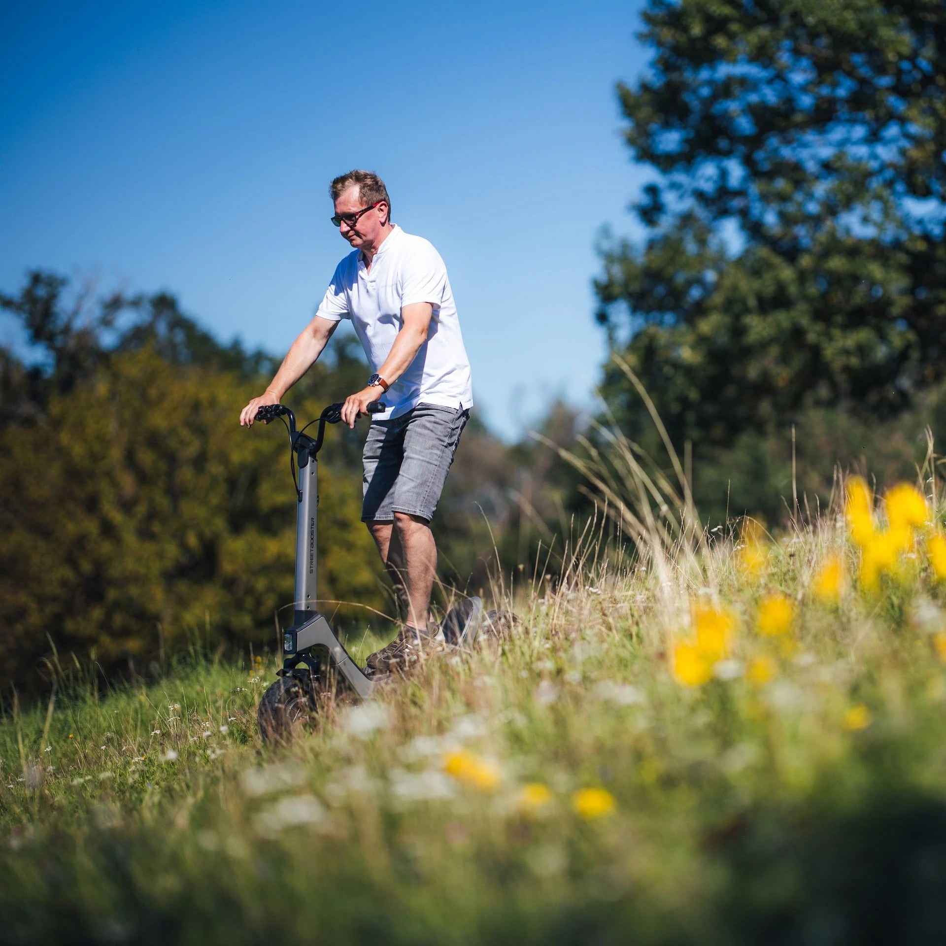 STREETBOOSTER Pollux je popolna izbira za zahtevne urbane voznike, ki iščejo kombinacijo stila, varnosti in izjemnega udobja. Zaradi svoje robustne konstrukcije in nosilnosti do 144 kg je idealen za težje voznike ali tiste, ki s seboj vozijo dodatno prtljago. Njegova edinstvena stabilizacija in velika kolesa ga naredijo nepogrešljivega za vse, ki se vozijo po raznolikih podlagah, od asfalta do tlakovcev.