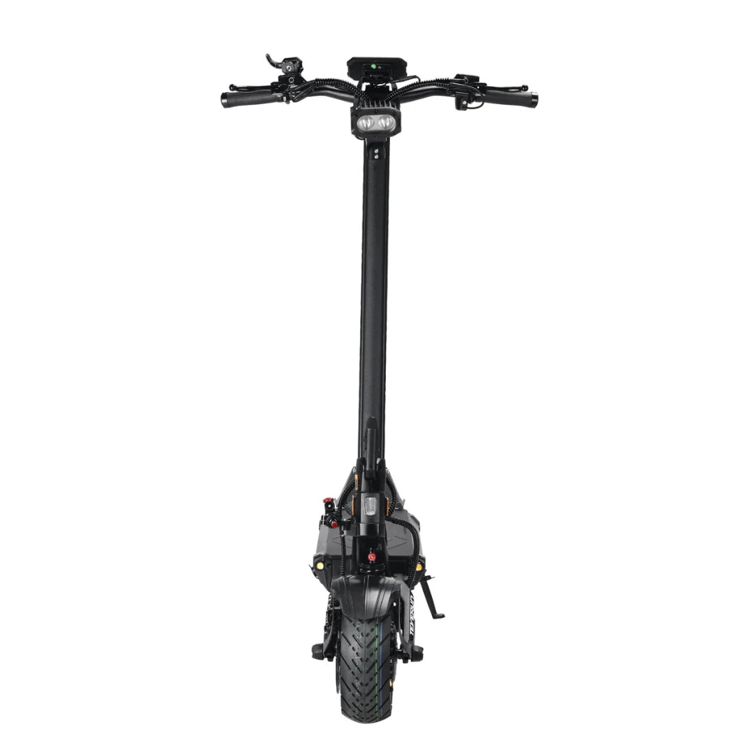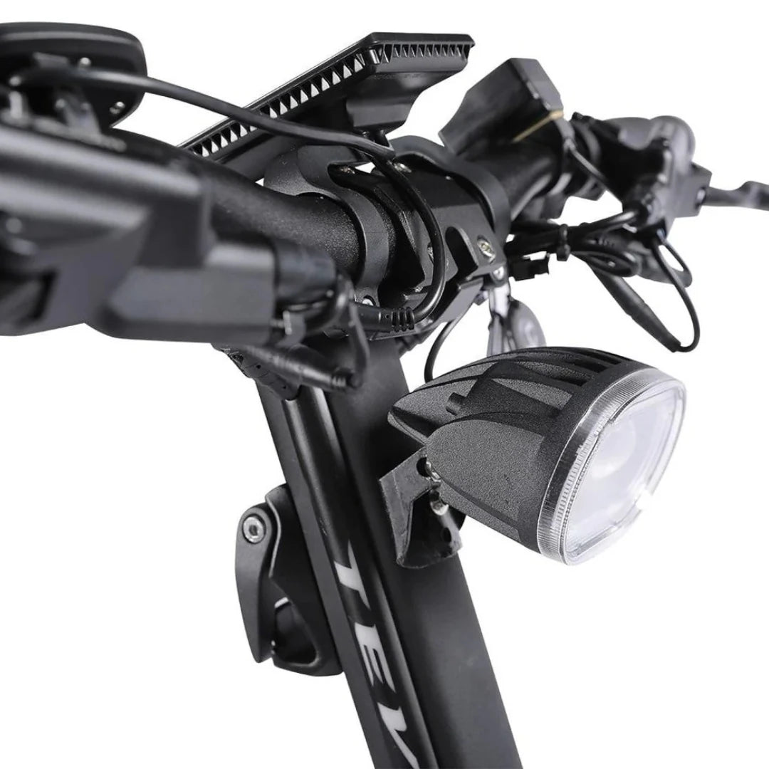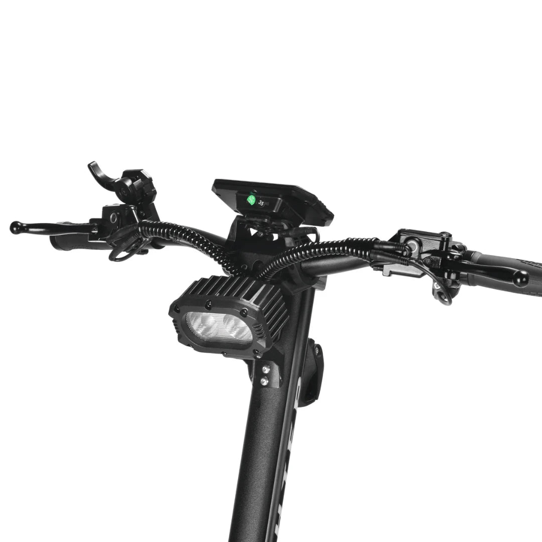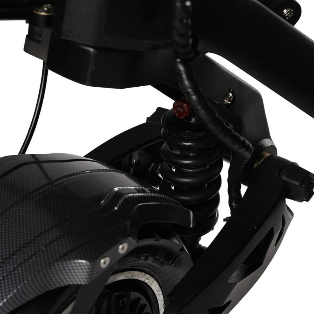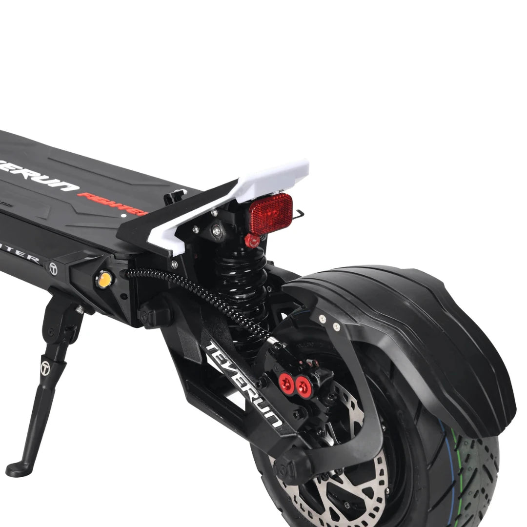 Varnost je pri takšni zmogljivosti ključna. Teverun Fighter 11+ uporablja napredne 4-batne hidravlične disk zavore, ki nudijo 100 % večjo zavorno površino v primerjavi s standardnimi zavorami. To zagotavlja močnejšo zavorno silo, 30 % krajšo zavorno pot in 50 % manjše pregrevanje zavor. Ne glede na to, ali se spuščate po strmem hribu ali se morate hitro ustaviti pred oviro, boste imeli popoln nadzor.