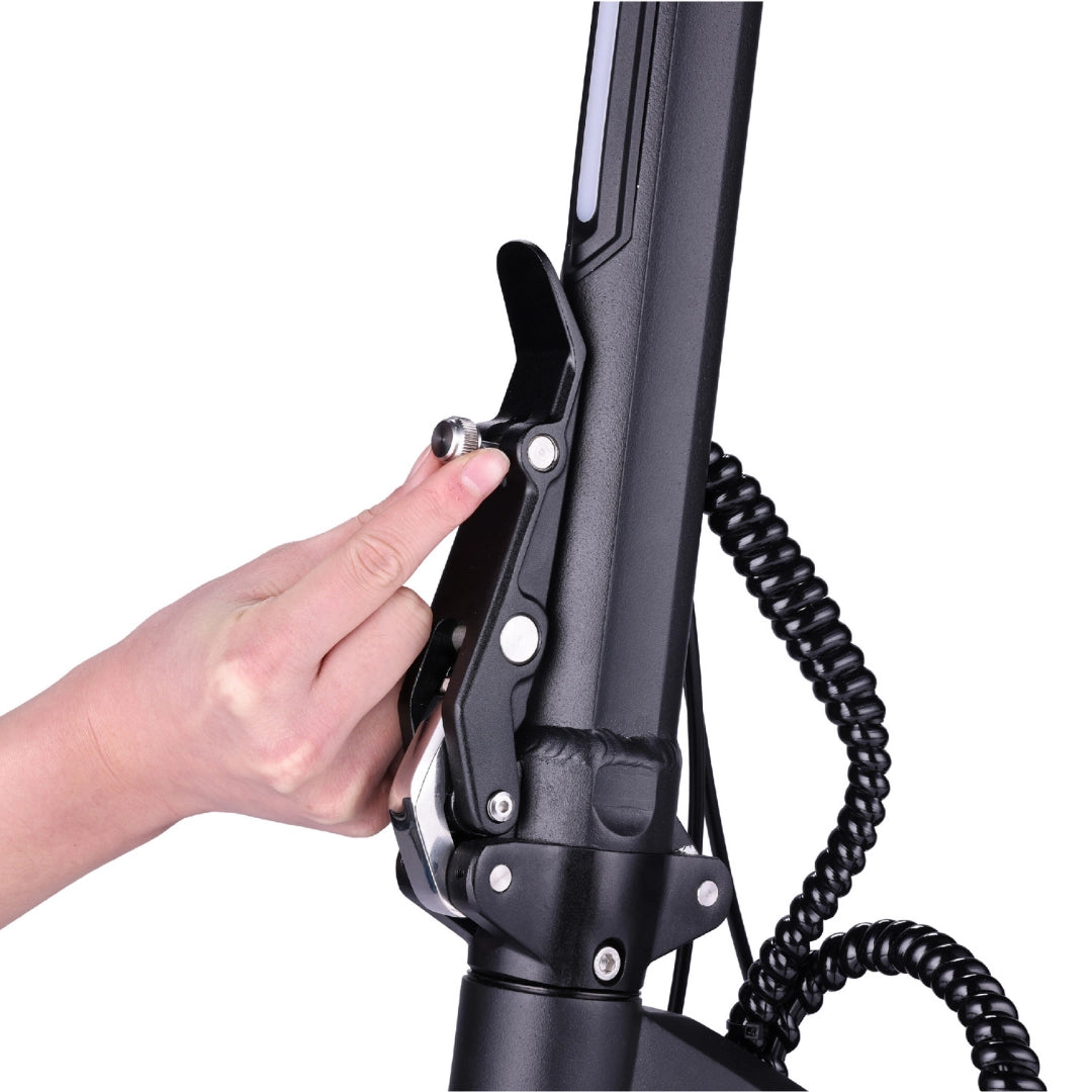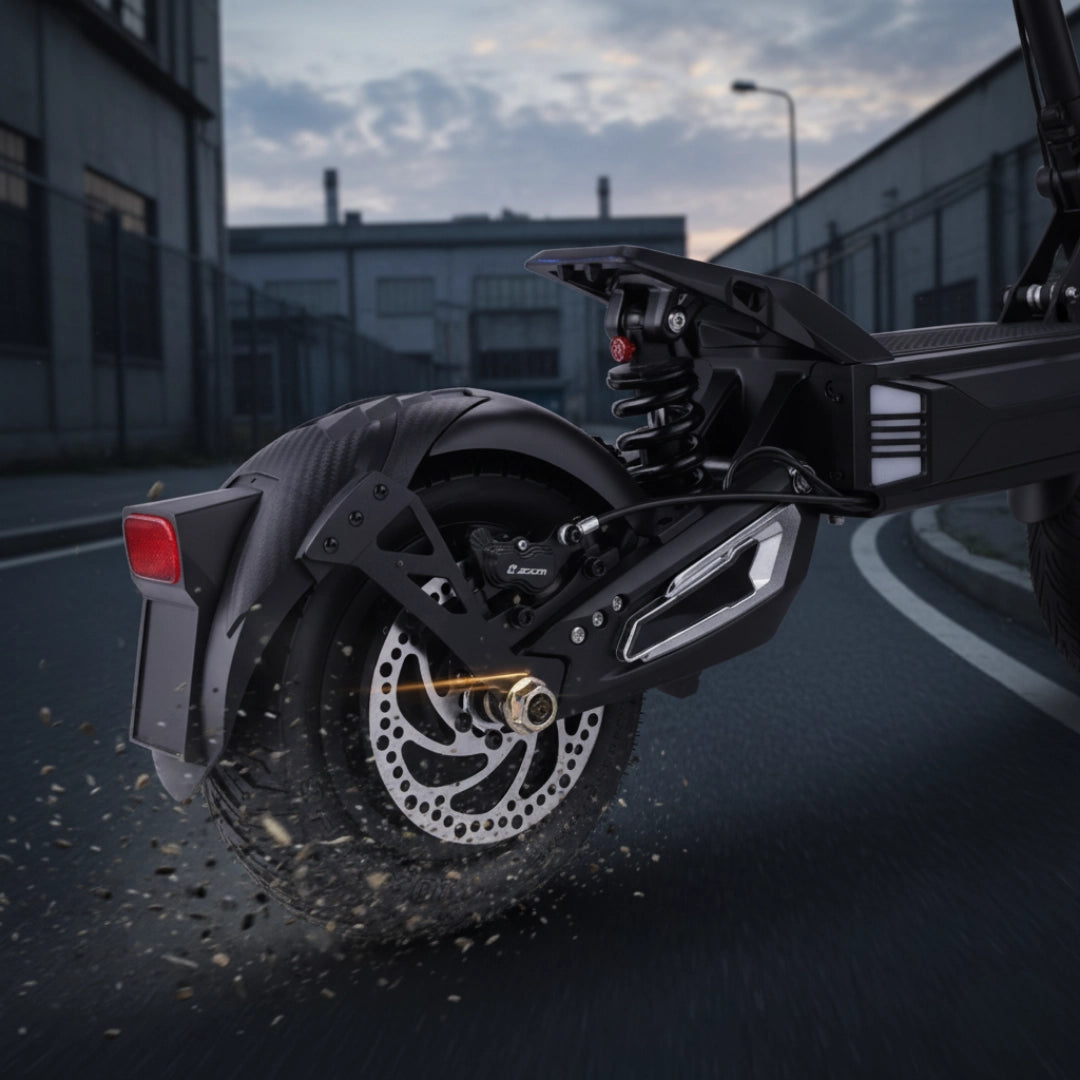 Doživite neprimerljivo udobje v vožnji zahvaljujoč vodilnemu nastavljivemu hidravličnemu vzmetenju SpringR. Ta napredna tehnologija z lahkoto absorbira vse udarce in tresljaje, kar zagotavlja izjemno gladko vožnjo po mestnih ulicah in zahtevnejših terenih. V kombinaciji z velikimi 10 x 3-inčnimi pnevmatskimi pnevmatikami boste imeli občutek, da lebdite nad cesto.