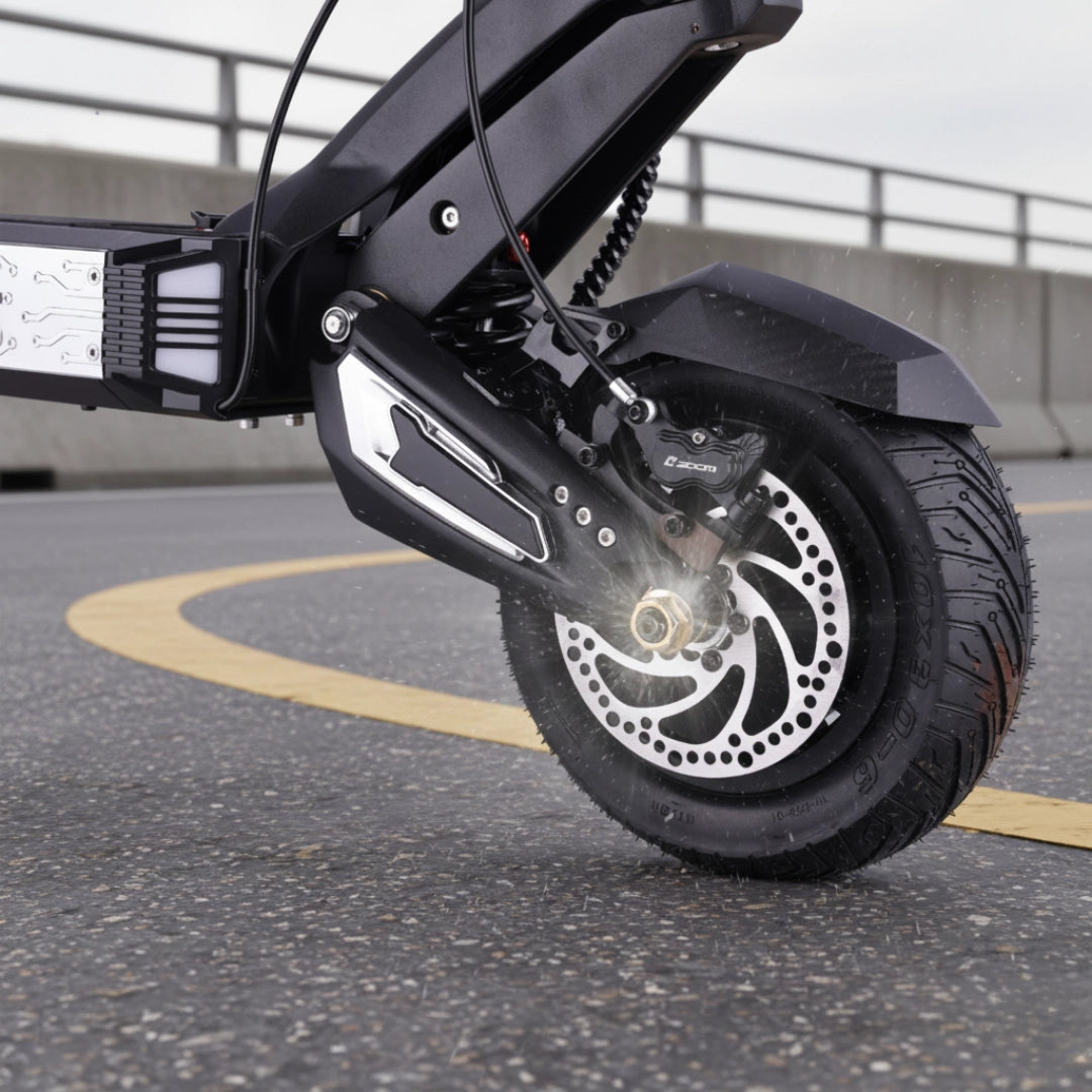 Zmogljivost zahteva vrhunski nadzor. Vsett 10 APEX je opremljen z močnimi sprednjimi in zadnjimi hidravličnimi disk zavorami, ki jih dopolnjuje sistem električnega zaviranja. Ta kombinacija zagotavlja izjemno zanesljivo, odzivno in natančno zavorno moč, kar vam omogoča varno ustavljanje v vseh pogojih in popoln nadzor nad vožnjo.