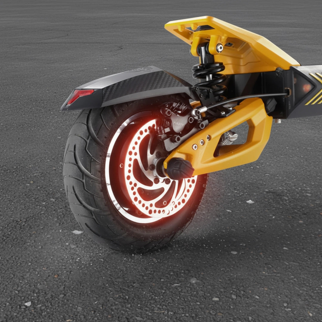 Srce skiroja je visokokakovostna LG baterija s kapaciteto 60V 25.6Ah, sestavljena iz celic LG 21700. Ta zmogljiva baterija zagotavlja impresiven doseg do 105 km z enim polnjenjem (v načinu ECO z enim motorjem), kar vam omogoča brezskrbne dolge izlete brez nenehnega iskanja polnilnice. Z možnostjo hitrega polnjenja z dvema polnilcema lahko čas polnjenja skrajšate na samo 5 ur.