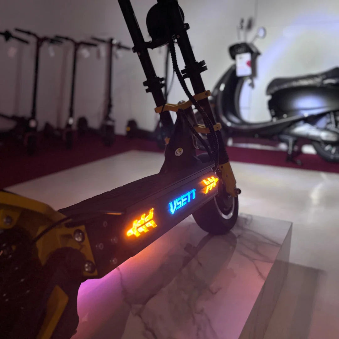Električni skiro Vsett 11+ SUPER je zasnovan za zahtevne in izkušene voznike, ki iščejo vrhunec zmogljivosti, stabilnosti in varnosti. Idealen je za tiste, ki potrebujejo zanesljiv prevoz za daljše razdalje in ne delajo kompromisov pri udobju in moči. S svojo robustno konstrukcijo, nosilnostjo do 150 kg in izjemno stabilnostjo je popolna izbira za uporabnike, ki cenijo vrhunsko zavorno varnost, opaznost v prometu in mirno delovanje naprednega 72-voltnega sistema.