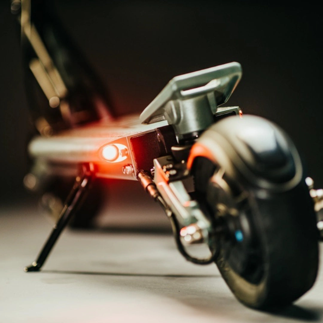 Vaša varnost je ključnega pomena. Vsett 8 je opremljen z zanesljivim zavornim sistemom, ki vključuje sprednjo in zadnjo boben zavoro, podprto z električnim regenerativnim zaviranjem. Za maksimalno vidnost v prometu poskrbi celovit sistem luči: dvojni LED žaromet, zadnja luč, zavorna luč ter intuitivni smerniki, ki jih enostavno upravljate z gumbi na ročajih.