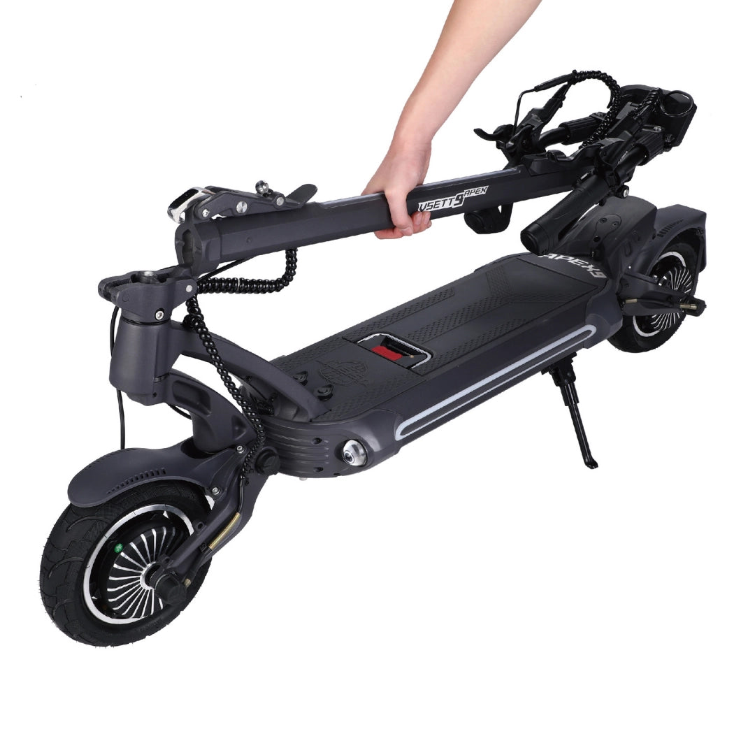 Električni skiro Vsett 9 APEX je zasnovan za zahtevne mestne uporabnike, ki iščejo popolno kombinacijo moči, velikega dosega in vrhunskega udobja. Idealen je za vse, ki svojo dnevno pot opravljajo na daljših razdaljah in potrebujejo zanesljiv prevoz, ki se ne ustraši niti bolj razgibanih terenov. S svojo robustno zasnovo, hidravličnimi zavorami in naprednimi funkcijami je popolna izbira za varno in dinamično vožnjo.