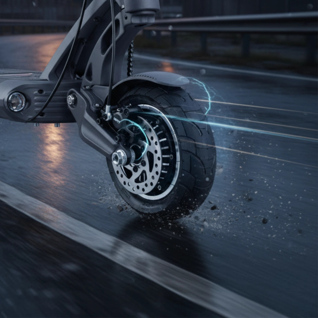 Ko gre za varnost, ni prostora za kompromise. Vsett 9 APEX je opremljen z vrhunskimi sprednjimi in zadnjimi hidravličnimi disk zavorami. V kombinaciji z električno zavoro zagotavljajo izjemno zavorno moč, natančno doziranje in zanesljivo ustavljanje v vseh voznih razmerah, kar vam daje popoln nadzor in mirnost med vožnjo.