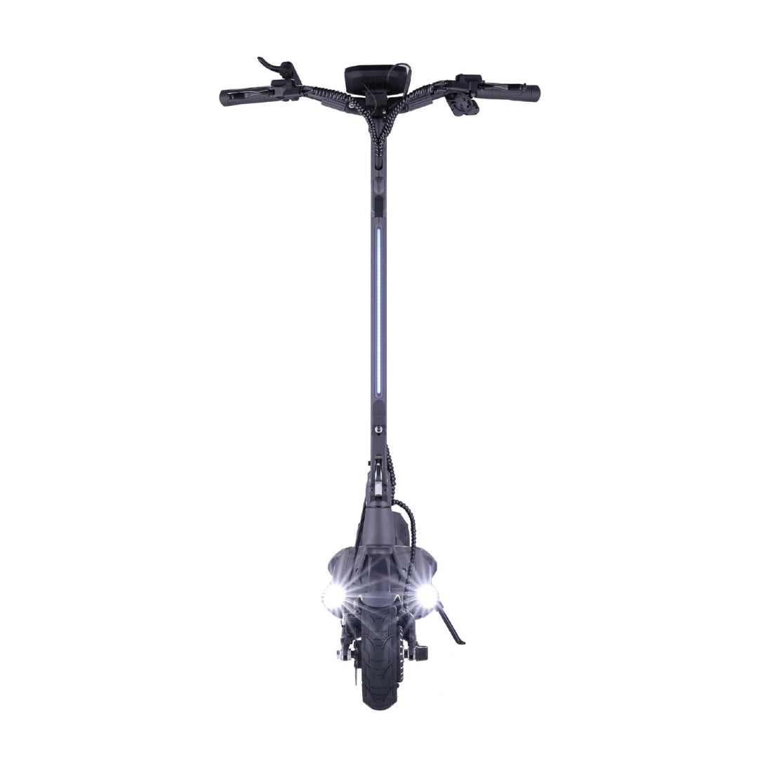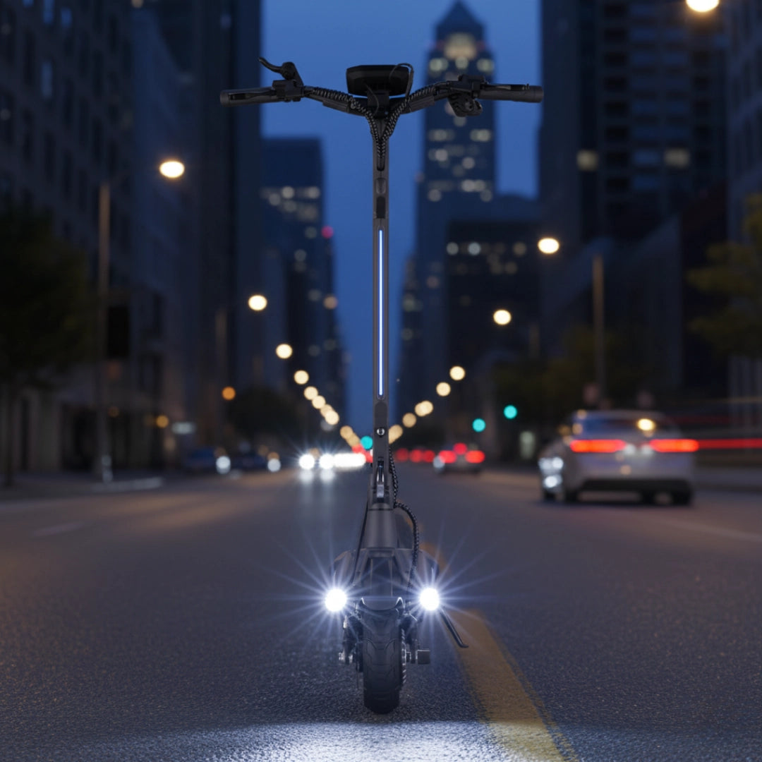 Vsett 9 APEX poskrbi za vašo vidnost in varnost v vseh svetlobnih pogojih. Opremljen je s celovitim sistemom osvetlitve, ki vključuje dvojni sprednji LED žaromet, zadnjo luč, zavorne luči, izrazite smerne kazalce ter ambientalno osvetlitev na stojišču in krmilnem drogu, kar zagotavlja 360-stopinjsko vidnost.