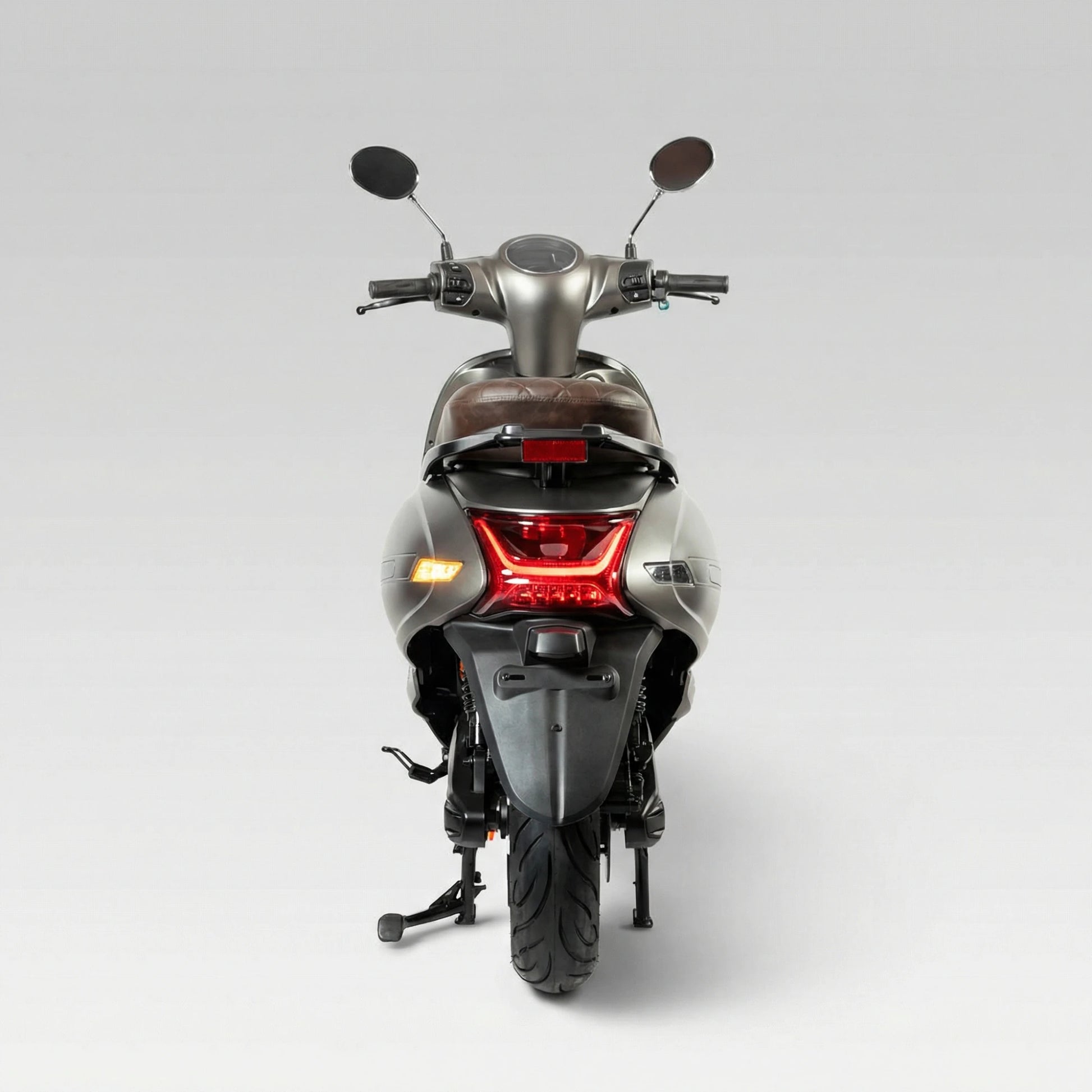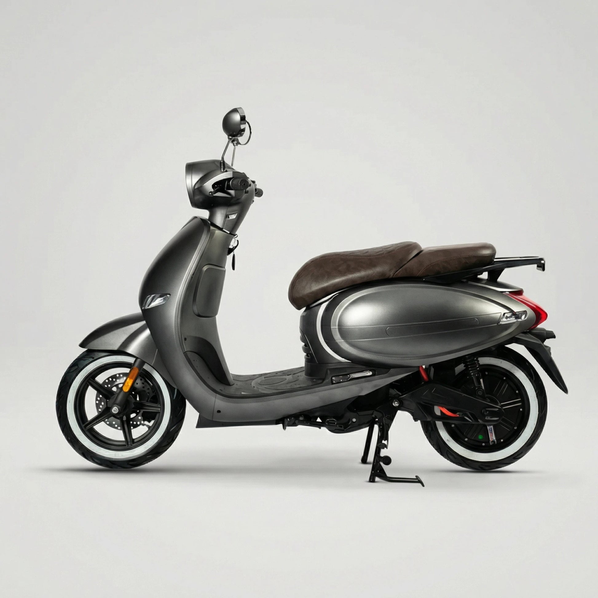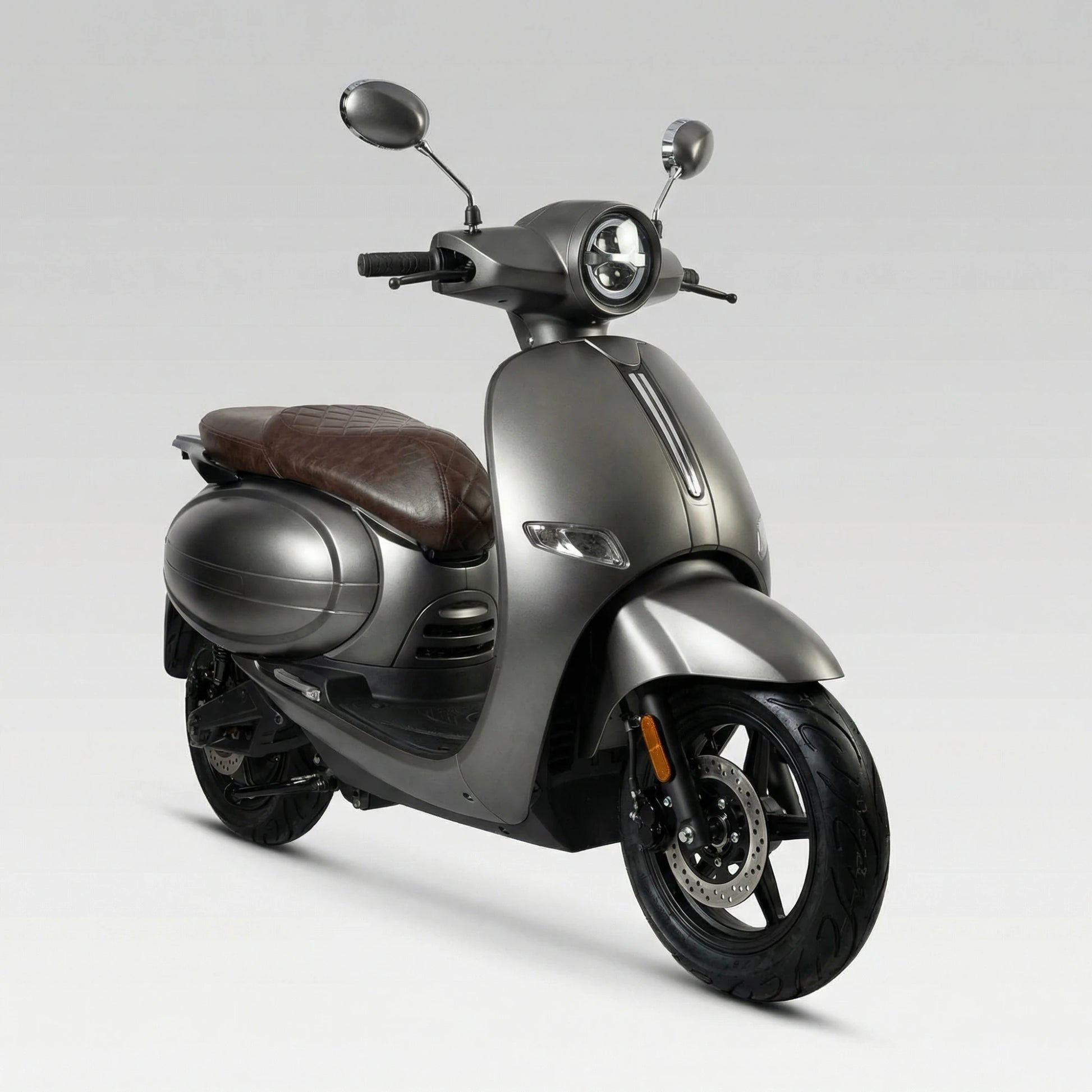 NMOTO LX06 je poklon legendarnim oblikam Vespe in Lambrette, ustvarjen za tiste, ki ne pristajate na kompromise med slogom in tehnologijo. Z dolžino 1865 mm je večji in udobnejši od manjših mestnih skuterjev, kar mu daje resen prezenco na cesti. S hitrostjo, omejeno na 45 km/h (kategorija AM/L1e-B), ga lahko vozite z izpitom za avto ali moped. Poseben pečat mu dajejo dodelani detajli in prešit sedež v videzu usnja.