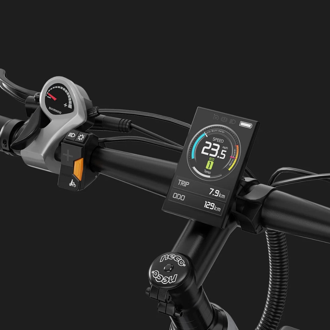Pregleden 3.5-palčni HD LCD zaslon prikazuje vse ključne informacije, kot so hitrost, stanje baterije, prevožena razdalja in stopnja pomoči. Za dodatno praktičnost je na zaslonu vgrajen tudi hiter in priročen polnilni priključek Type-C, ki vam omogoča polnjenje vaših naprav med vožnjo.