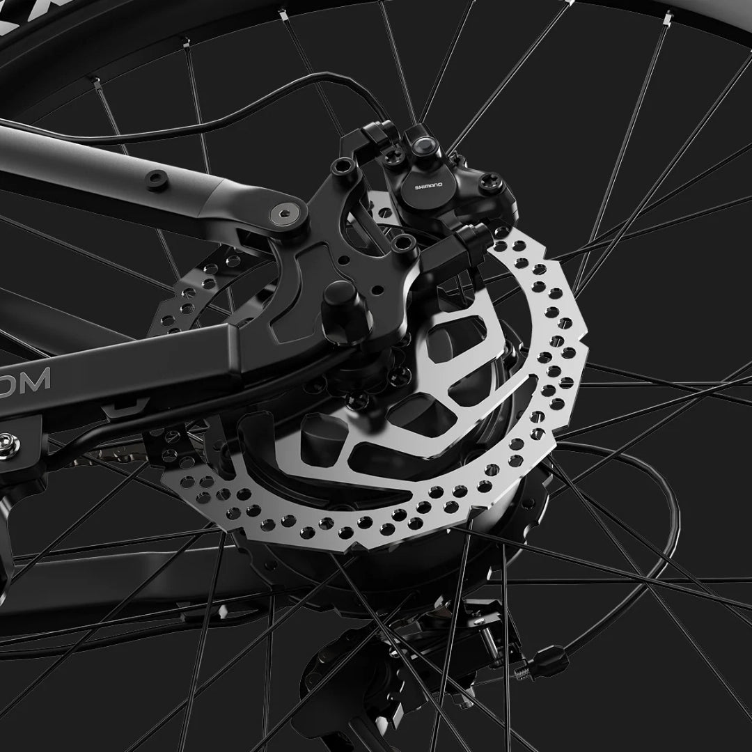 Varnost je na prvem mestu. DUOTTS E29 je opremljen z dvobatnimi hidravličnimi disk zavorami Shimano MT200. Ta sistem zagotavlja močno in dosledno zavorno moč z odličnim odvajanjem toplote, kar omogoča varen nadzor v vseh pogojih, tudi na strmih spustih in spolzkem terenu.