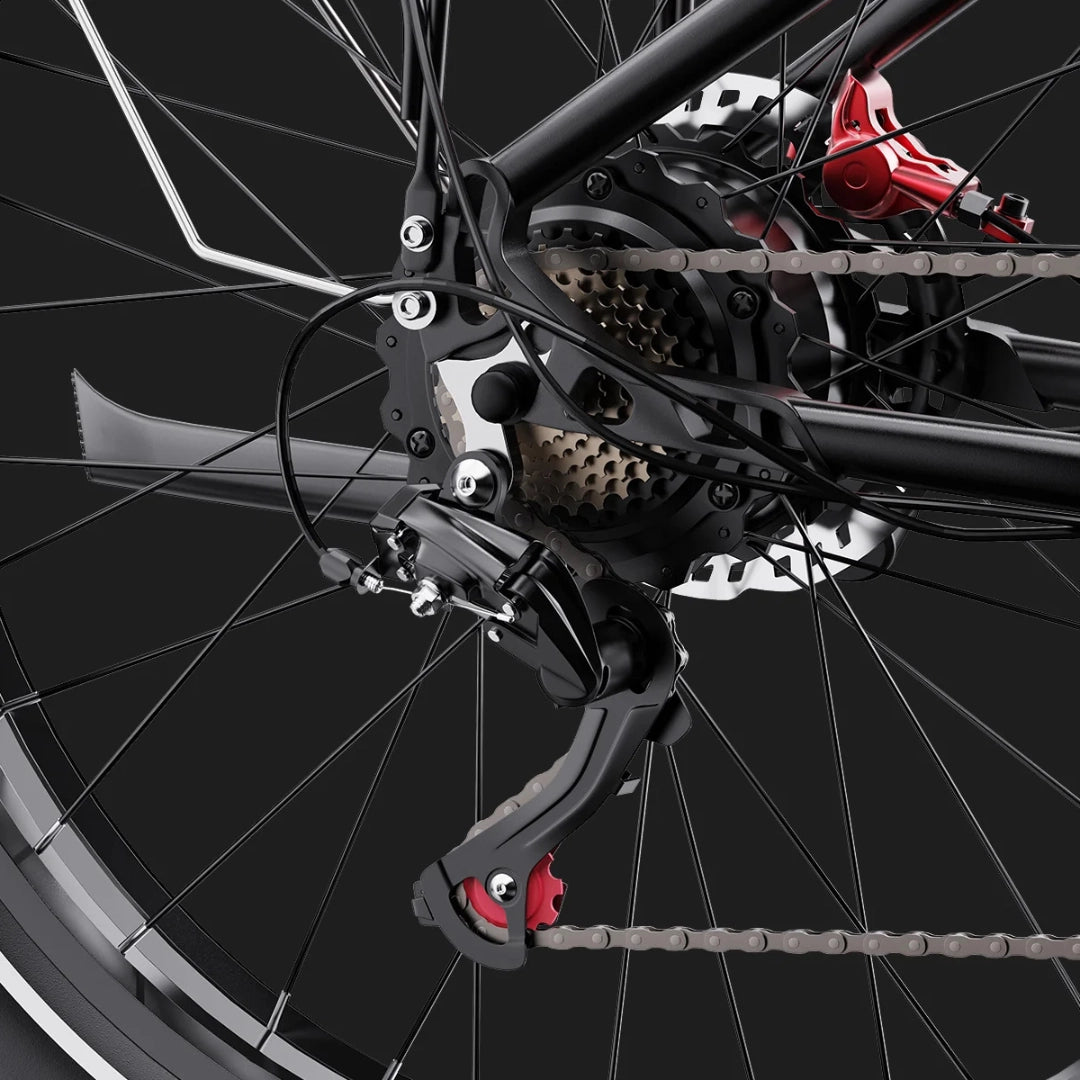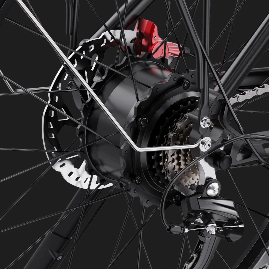 Duotts F26 Lite je opremljen z visoko učinkovitim 48V 750W motorjem, ki zagotavlja robustno moč in hitro odzivnost. Z največjim navorom 65 Nm so pospeški hitri, premagovanje klancev pa postane enostavno. Ta zmogljiv motor vam omogoča, da se samozavestno podate na vsako pot.