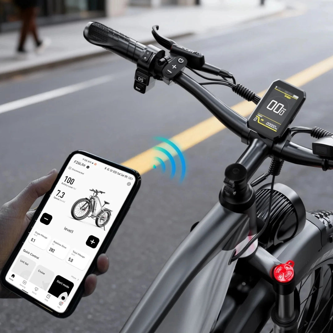Spremljajte vse ključne informacije o vožnji v realnem času na velikem 3.2-palčnem HD LCD zaslonu. Prikazuje hitrost, stanje baterije, prevoženo razdaljo in druge podatke. Zaslon omogoča tudi Bluetooth povezavo, kar vam omogoča enostavno sinhronizacijo kolesa z aplikacijo Duotts na vašem pametnem telefonu za sodobno kolesarsko izkušnjo.