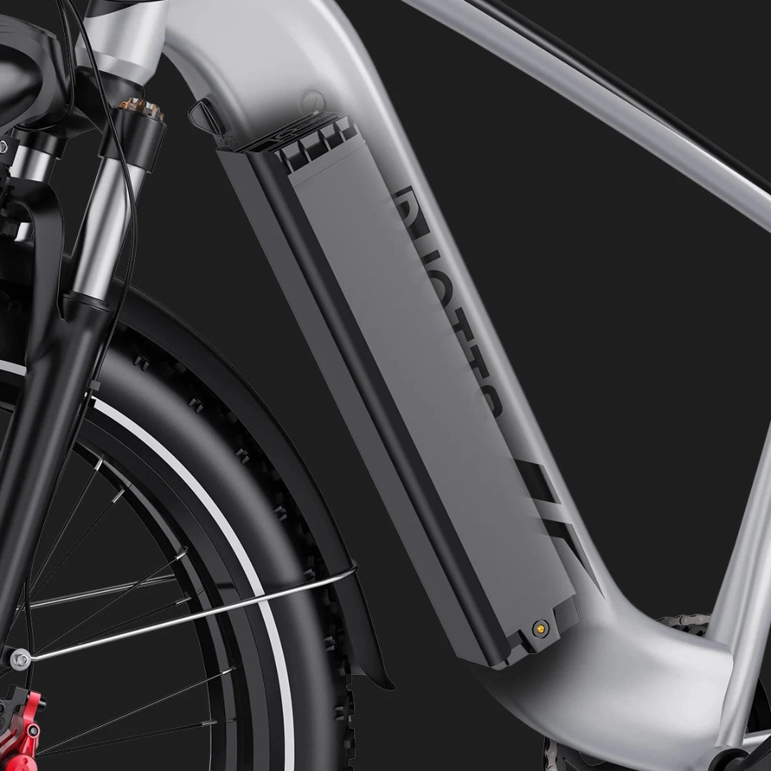 Kolo odlikuje eleganten dizajn z baterijo, ki je popolnoma integrirana v okvir. To ne zagotavlja samo čistega in stilskega videza, temveč tudi zmanjšuje vibracije in izboljšuje stabilnost med vožnjo. Zmogljiva baterija 48V 18Ah omogoča izjemen doseg do 90 km v načinu pomoči, kar vam daje svobodo za daljša raziskovanja.