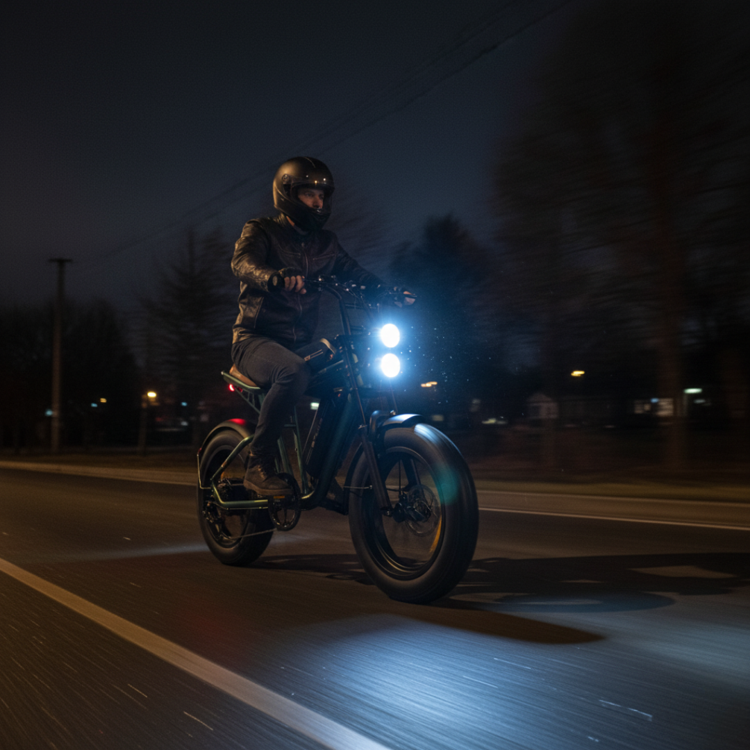 Engwe M20 s svojim robustnim okvirjem iz aluminijeve zlitine in prepoznavnim dizajnom pritegne poglede. Za varno vožnjo ponoči poskrbita dvojna sprednja LED žarometa in svetla zadnja zavorna luč, ki zagotavljata, da boste vedno vidni in varni na cesti.